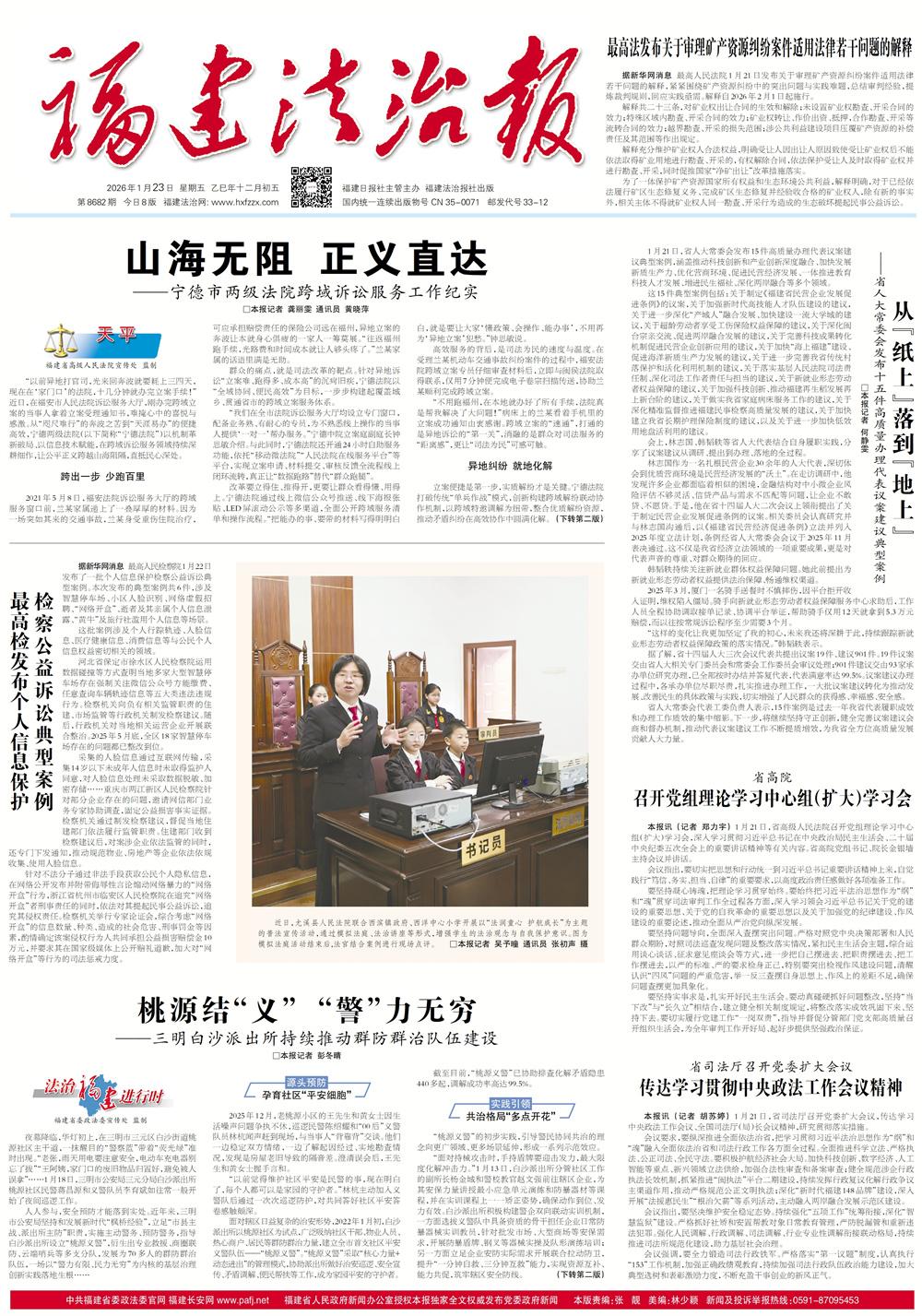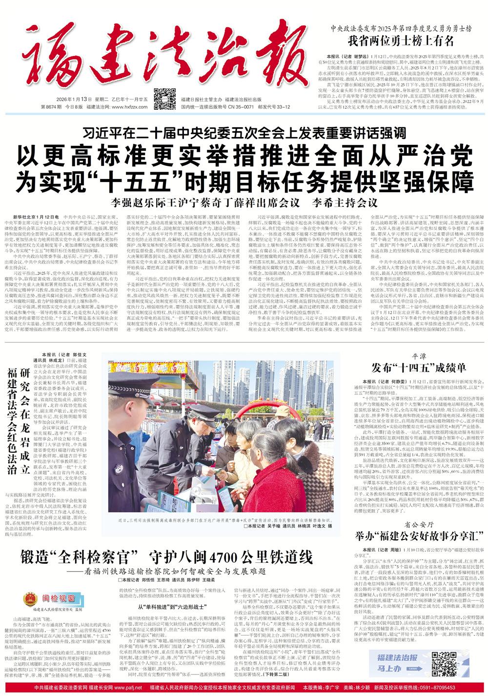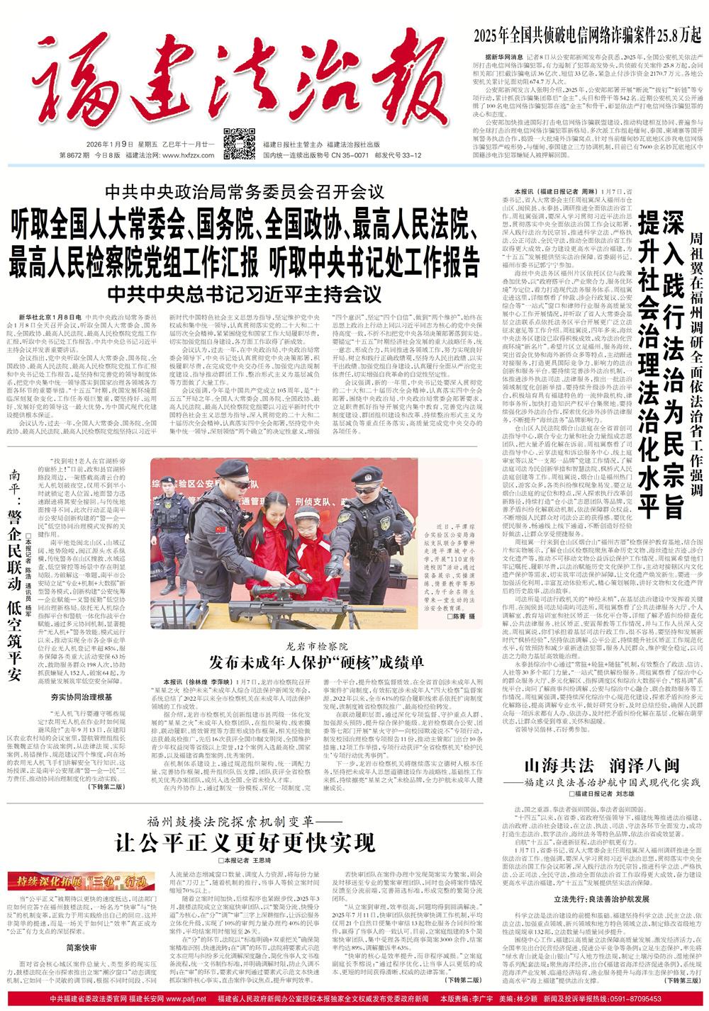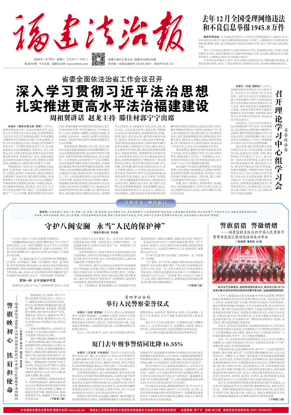 1月9日,省委政法委召开理论学习中心组学习会。会议深入学习贯彻习近平法治思想、习近平总书记关于全面依法治国工作的重要指示和中央全面依法治国工作会议精神,推动以更强自觉、更大力度、更实举措打造平安福地和法治高地,为推进中国式现代化福建实践提供有力法治保障。省委常委、政法委书记石好勇主持并讲话,委务会议成员作交流发言。[详细]
