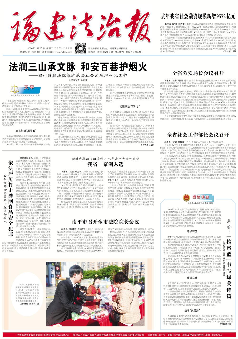 2月4日,全省检察长会议在福州召开。会议贯彻落实中央、省委政法工作会议以及全国检察长会议、省两会部署要求,总结2025年检察工作,部署2026年主要任务。省检察院党组书记、检察长侯建军出席并讲话。[详细]