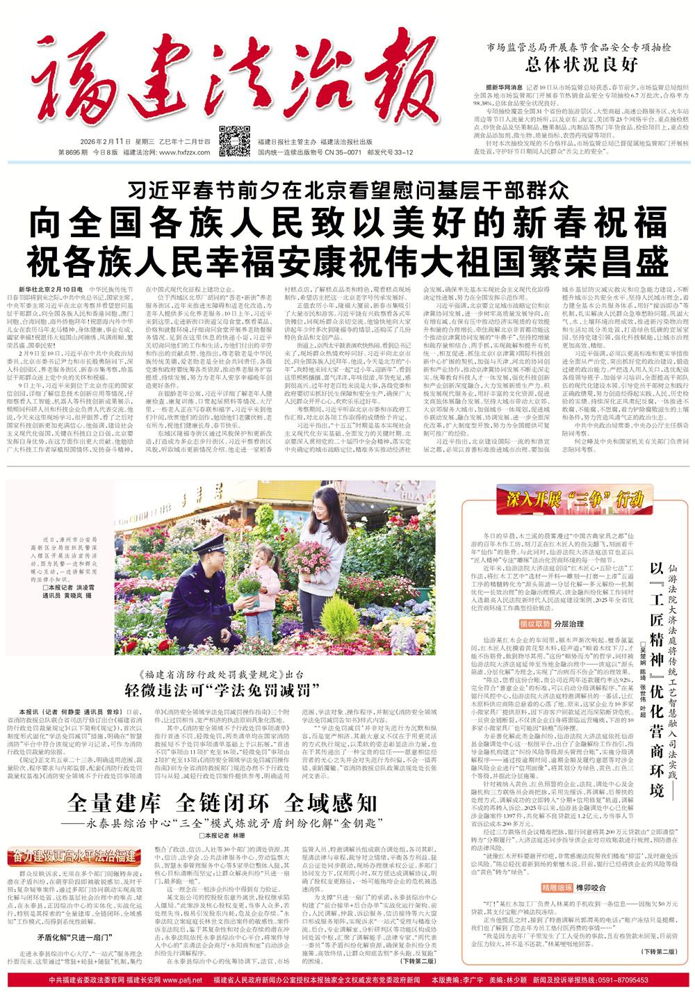 2月5日,省委常委、政法委书记石好勇到平潭综合实验区调研,强调要深入学习贯彻中央政法工作会议精神,认真落实省两会部署和省委政法工作会议要求,强化履职担当,突出提质增效,着力加强平安建设,优化法治化营商环境,为实现“十五五”良好开局贡献政法力量。[详细]