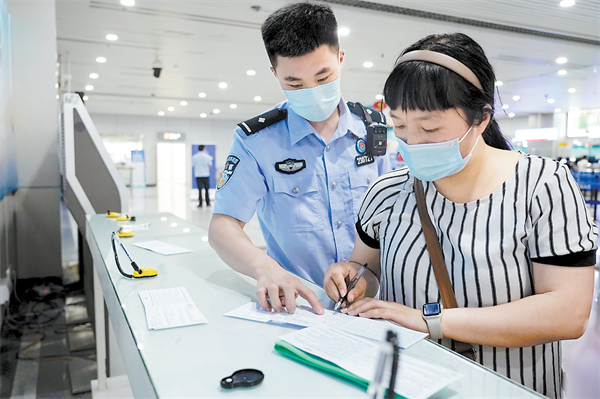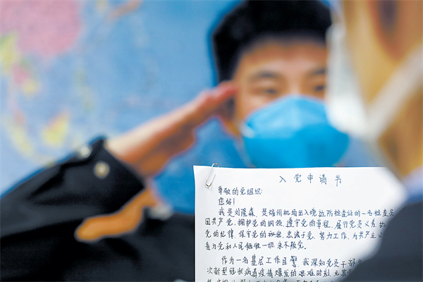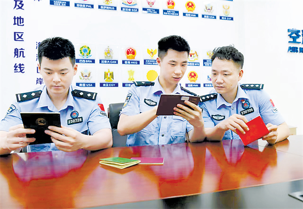 2020年2月,奋战抗击疫情一线的刘隆森加入中国共产党 “曾梦想仗剑走天涯,看一看世界的繁华。”这是刘隆森年少时的梦想,像侠客一样鲜衣怒马、闯荡天涯,游历祖国大好河山。2016年的南海风云则改变了他的想法:“我要去当兵,守护祖国这片大好河山。” 2017年9月,18岁的刘隆森高中毕业后应征入伍,登上了由“红色故都”江西瑞金开往福州的列车,“守护祖国大好河山”的梦想,从这一刻起成为现实。 福州机场出入境边防检查站查验现场 有梦不觉征衣单。“新兵连挺辛苦的,但我心里是甜的,为梦想奋斗是一件很美好的事情。”刘隆森笑着回忆,言语间透露着骄傲。 然而,这身军装只穿了一年多,军旅梦就中断了。2019年,公安边防部队集体退出现役转改成人民警察。踏着改革的春风,刘隆森通过士兵转改考试,成为那时福建边检机关年龄最小的新警。 刘隆森(中)与同事交流出入境证件真伪识别经验 想着整个职业生涯都要在风吹不着、雨打不着的空港口岸,日复一日、简单重复地与出入境人员、证件打交道,曾经满腔热血的少年,心里不免有些许失落。“一开始挺不适应的,有一种梦想破灭的感觉。”刘隆森说道。 看着形形色色的出入境证件、书本里一串串英文代码、零零种种的知识点,从未接触过边检业务的刘隆森总感觉无所适从,学习时总会出神发呆,脑子里时常浮现电视剧里军人那些惊心动魄、轰轰烈烈的战斗情节。 师傅李涛察觉出刘隆森的状态,对他说:“验讫章虽小,验证台也不大,但当一名旅客来到你面前,出入境证件拿到你手上的那一刻,你守护的就是国门的安全,更是国家的安全。我们其实是战斗在没有硝烟的战场,不该进的一个不能放进来,不该出的一个不能放出去,这同样是在保卫祖国啊!”
