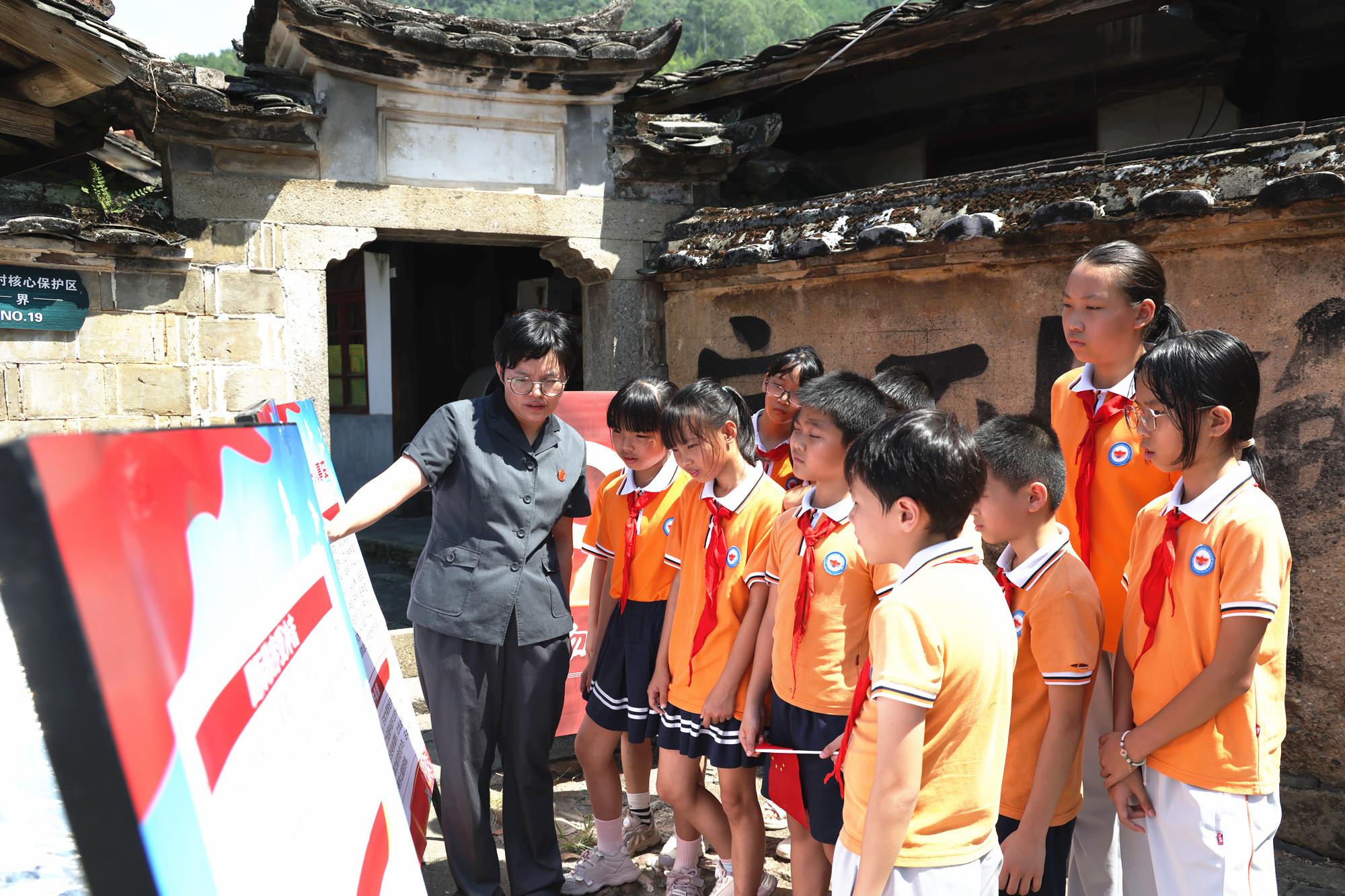 近日,永安市人民法院在永安市吉山抗战旧址组织开展主题宣传活动,带领永安市上吉山希望小学的同学们参观抗战旧址。图为法院干警向同学们讲解“九一八”事变历史经过。 |