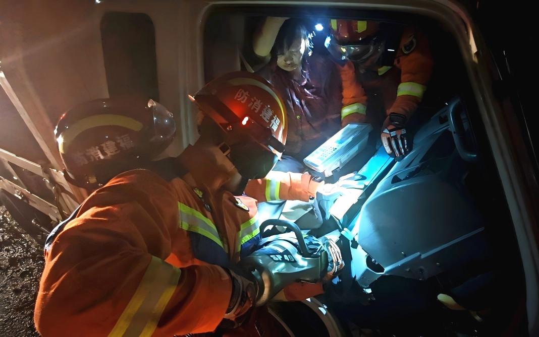 本报讯 9月21日20时49分,武平县三角铺往文溪方向发生一起交通事故,一辆四人座拖斗车撞向马路隔离护栏,造成车内人员被困。接到报警后,武平县消防救援大队南门消防救援站立即出动1车6人赶赴现场开展救援。 救援现场 到场后,经勘查发现,事故车辆车头因猛烈撞击严重变形,导致后座乘客腿部被卡,无法动弹。根据现场情况,指挥员对被困人员给予情绪安抚,并组织警戒组对现场实施安全警戒。同时,消防救援人员使用液压破拆工具对变形的车门及后座区域进行破拆和扩张作业。 整个救援过程紧张有序。仅用时8分钟,被困人员便被成功救出,并移交现场医护人员进一步救治。 |
