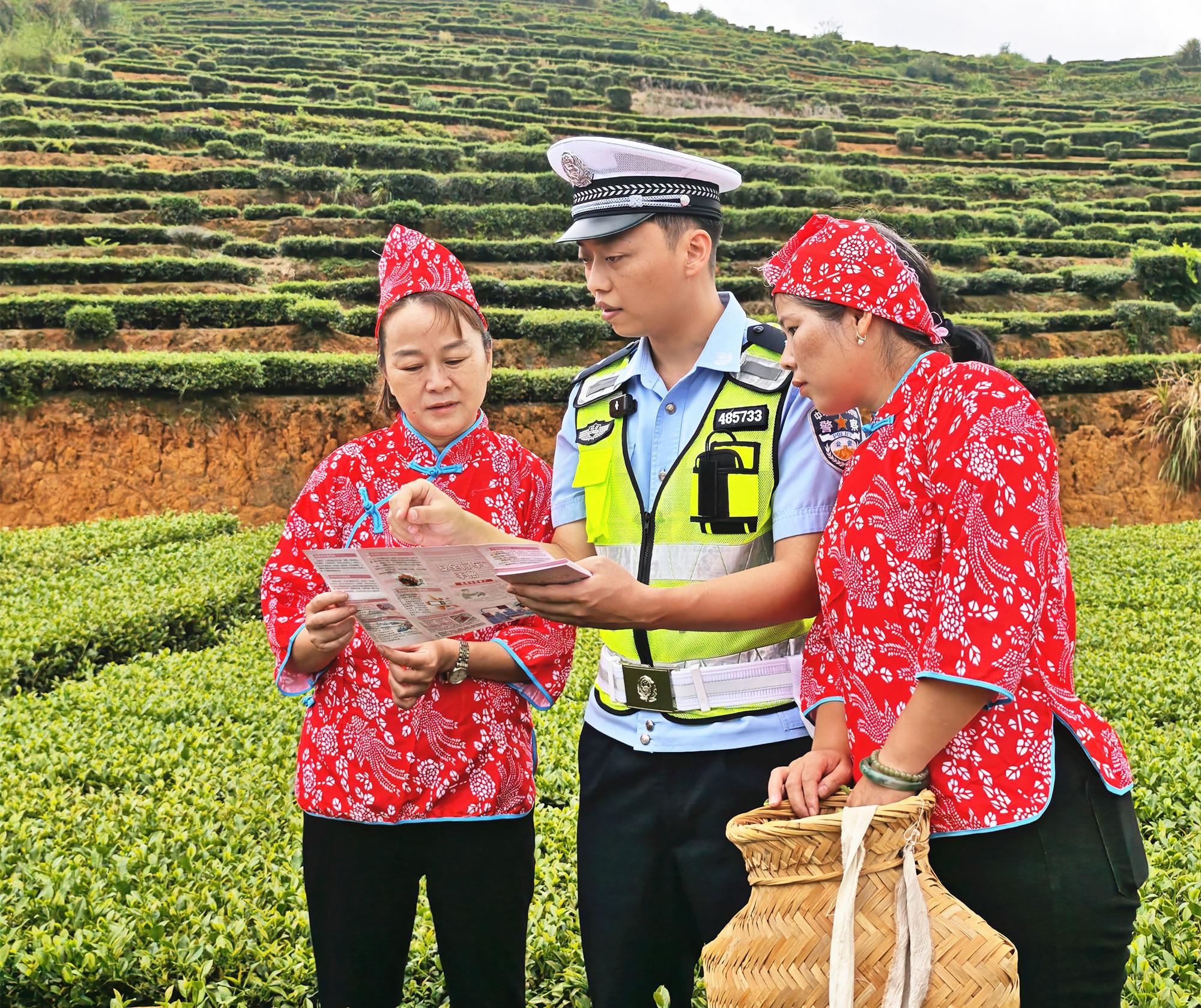 9月22日上午,安溪县公安局交警大队湖头中队民警到铁观音主产区之一的感德镇,和茶农共话交通安全。图为民警向茶农讲解交通安全知识。 |