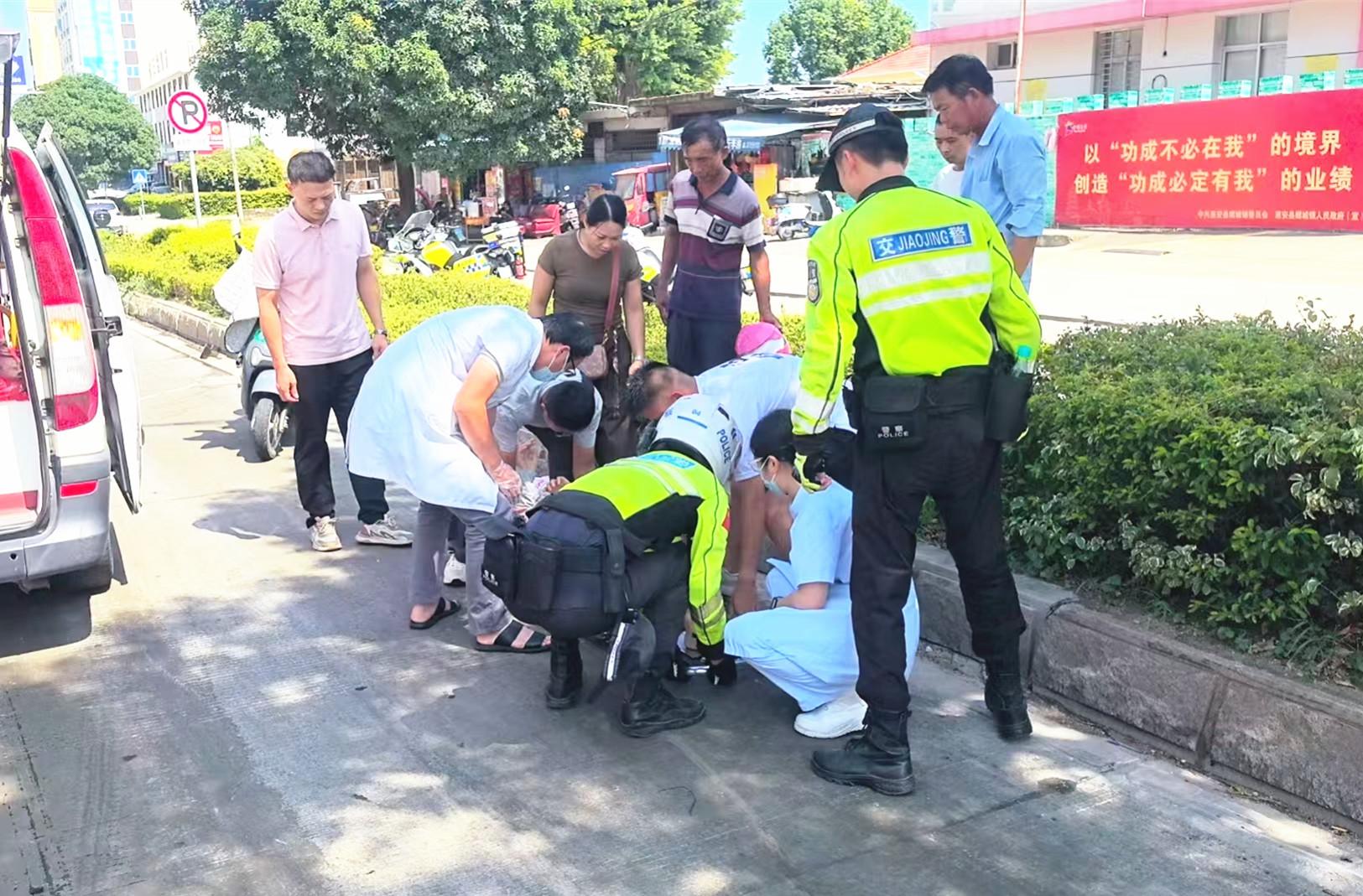 近日,惠安县公安局交警大队骑警队员巡逻至惠泉南路时,发现一辆小车和一辆电动自行车发生碰撞,电动自行车的驾驶人受伤。骑警队员立即上前查看伤者受伤情况,并联系120急救中心。同时,对该路段进行临时交通管制,防止发生二次事故发生。随后,骑警队员与医护人员一起将伤者搀扶到救护车上,及时送往医院救治。 |