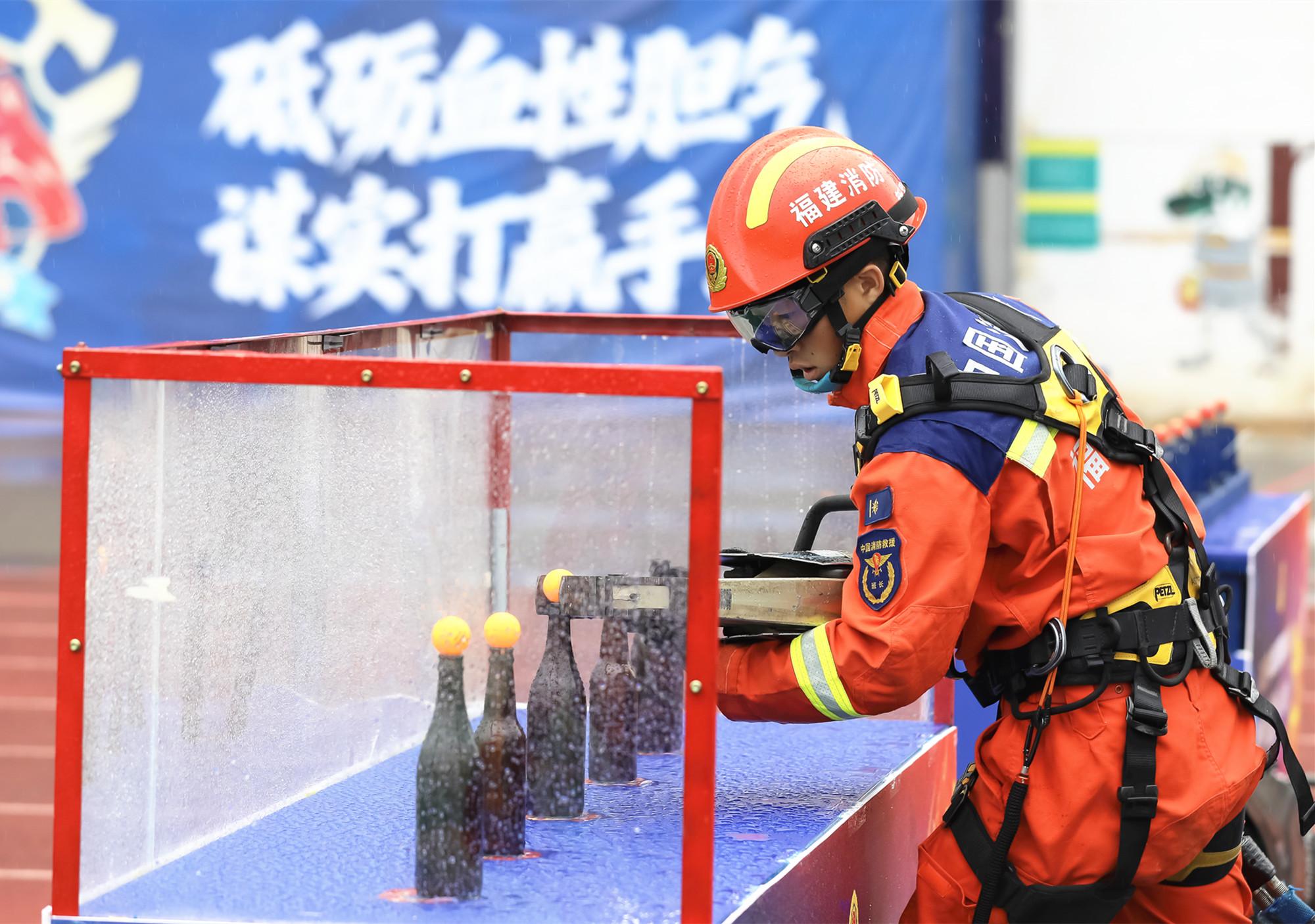 本报讯 10月21日,2025年福建省消防救援队伍岗位练兵“龙虎榜”比武竞赛在福州拉开帷幕,来自全省10支代表队、504名指战员齐聚赛场,展开激烈角逐。 莆田参赛队员参加“综合抢险救援”比武项目。 □陈静 陈琦 卓丽清 摄 龙岩参赛队员手持液压扩张器夹取乒乓球,精准放置玻璃瓶口。 □本报记者 何静雯 通讯员 谢贵明 摄 据悉,此次比武竞赛为期4天,共计设置3个大项目、10个小项目,既涵盖基础体能与核心技能比拼,又融入灭火救援实战演训、装备故障排除、指挥部通信体系搭建等实战内容,全面检验队伍基础素养、应急处置、装备保障和通信协同能力。 |