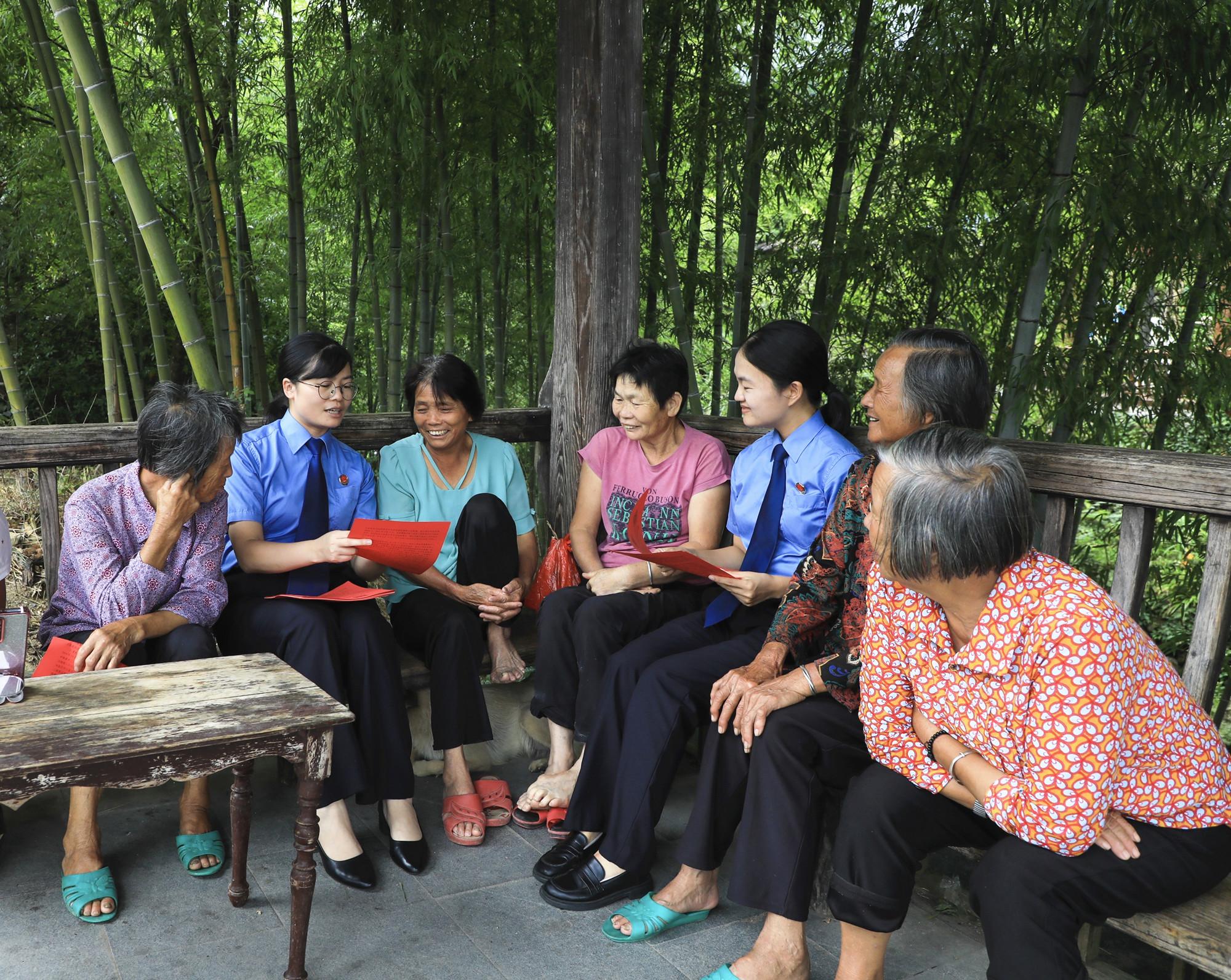近日,武平县检察院组织干警走进城厢镇云寨村,开展生态保护法治宣传。图为检察干警向群众讲解非法狩猎、滥伐林木等破坏生态违法犯罪行为的危害和法律后果。 |