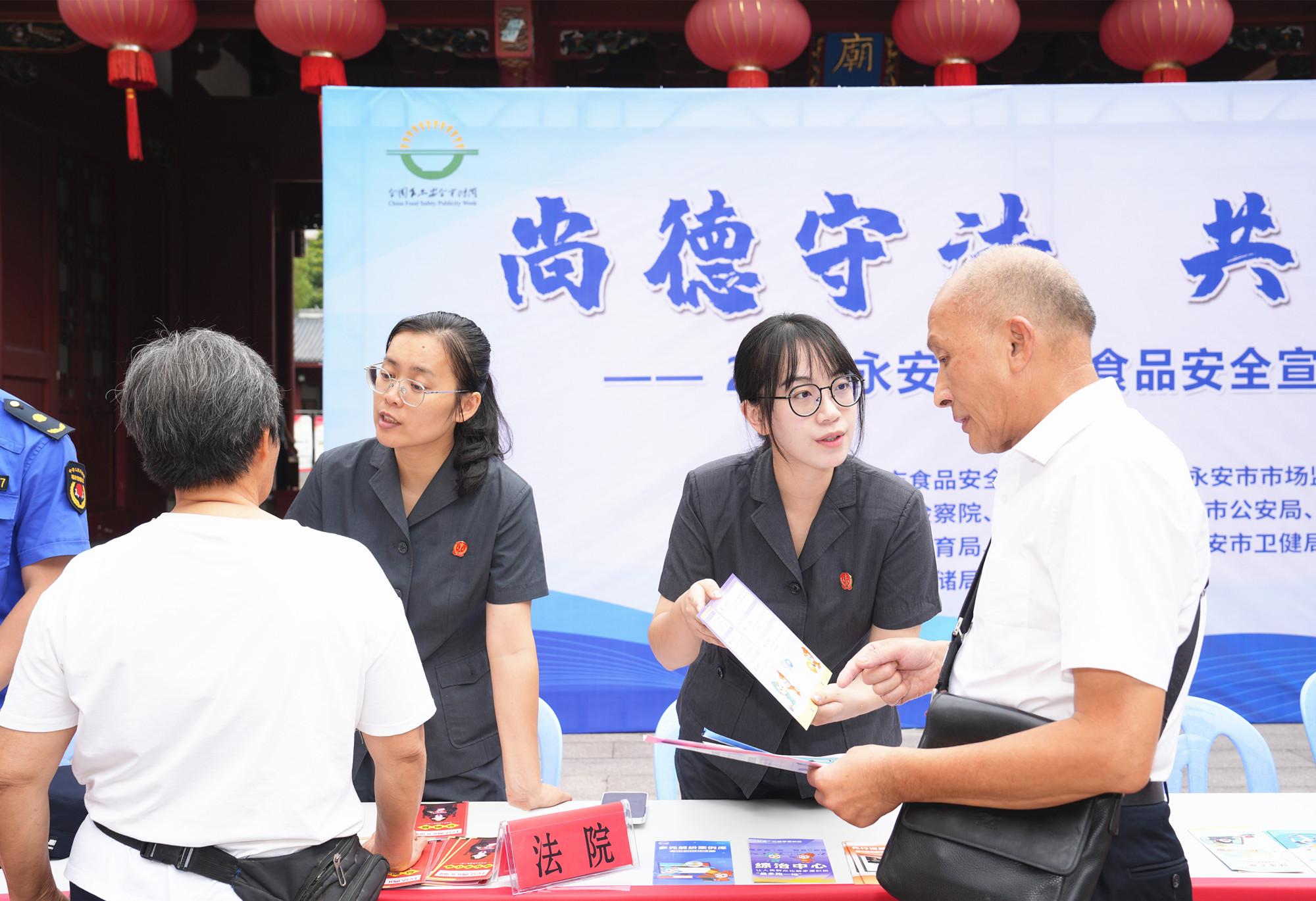 近日,永安市人民法院联合市检察院、市场监督管理局等单位在永安文庙开展“尚德守法 共享食安”普法宣传活动,旨在进一步增强全民食品安全意识,筑牢食品安全防线。 |