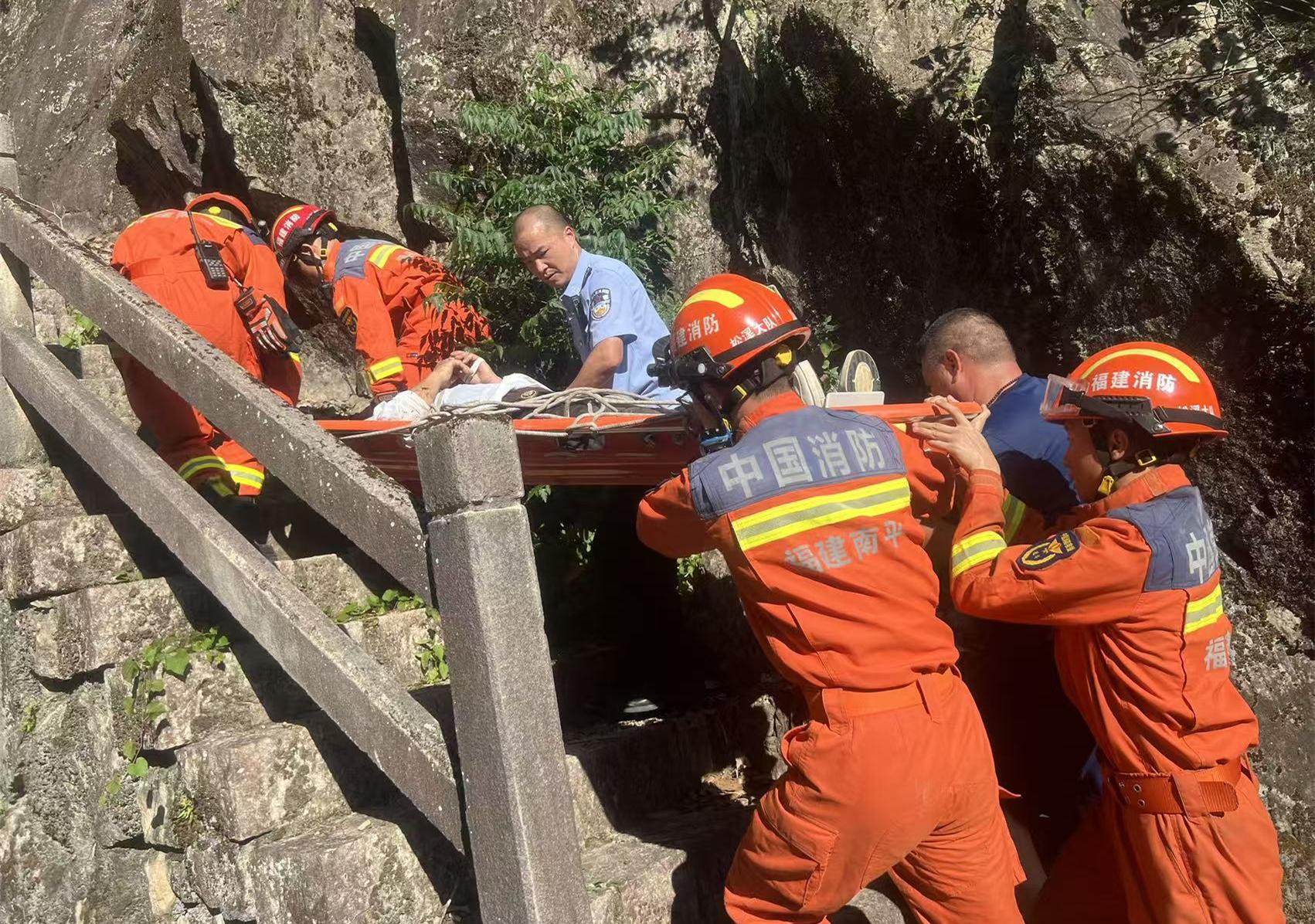 本报讯 近日,在松溪县茶州水库,一名群众不慎摔伤。松溪县公安局花桥派出所联合消防、医疗部门开展救援,最终成功将伤者送医。