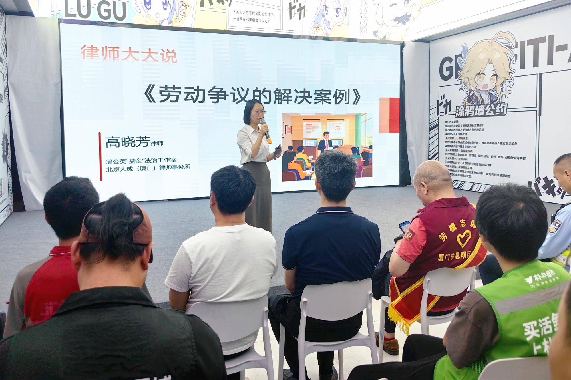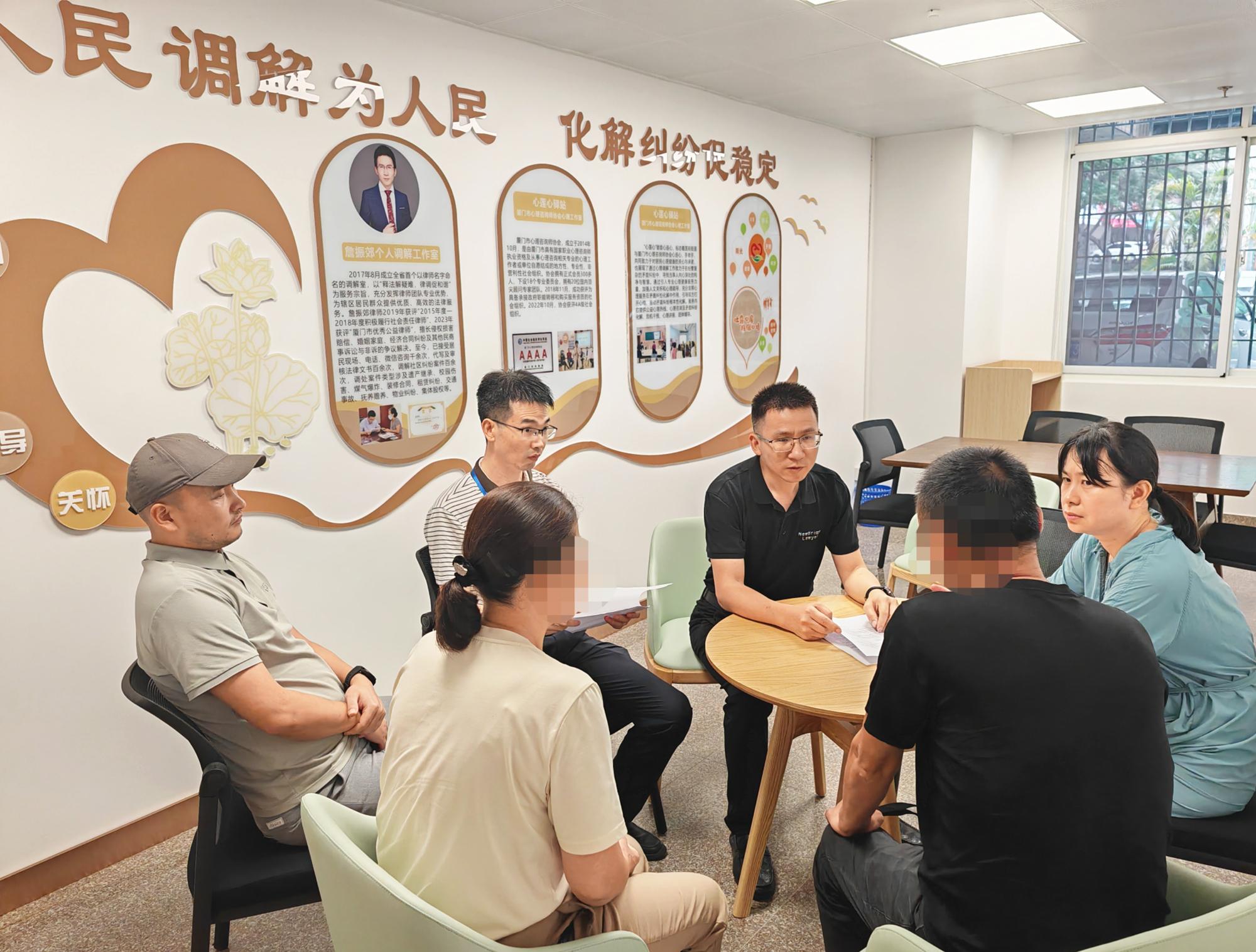莲前司法所启动“司律会商123”机制化解一起矛盾纠纷。 □唐玉洁 摄 “司律会商123”作为最具特色的调解机制,在处置突发纠纷时展现出独特优势。2024年7月,某饭店员工凌晨溺亡,其家属聚集讨要说法。司法所启动“1小时响应”机制,联合律师、社区迅速介入。律师从专业角度分析,将复杂的赔偿纠纷梳理出清晰的法律脉络,锁定某饭店“保险缴交”和同行者“过失侵权”两个关键点。经一天耐心调解,当晚就促成和解。这种司法所统筹协调、律师专业支撑、社区密切配合的工作模式,让矛盾纠纷化解既有速度又有章法。 场景为用: 实现精准服务零距离 莲前司法所聚焦不同群体需求,打造特色服务场景,让法治服务更精准。 针对楼宇企业聚集的特点,蒲公英“益企”法治工作室在万科创想中心落地成立。该工作室由司法所、律所和园区运管三方共建,每周二下午开设“律师会诊日”,为企业、员工提供合同纠纷、劳务问题等专业咨询服务。 除定点接待外,工作室还主动走进企业,开展“法治体检”,一家原创文创小微电商企业就曾因此受益。当时,该企业热销产品被模仿,遭遇恶意诉讼。工作室团队不仅指导企业成功应对投诉、发起商标维权,还帮助企业完善知识产权管理制度。企业负责人感慨:“以前觉得是出了问题找法,这次经历让我们意识到,未雨绸缪才是真正的法治智慧。” 在瑞景商业广场,“莲芯瑞境”法治街区的“法治微驿站”成为新就业群体的暖心港湾。外卖小哥小王(化名)在一次送餐途中被撞伤,还因订单超时被平台扣款。在法治微驿站,律师告诉他平台扣款于法无据,并指导他收集证据、与平台沟通,最终成功要回了扣款。 法治服务还延伸到特定产业领域。在今年“3·15”期间,莲前司法所联合莲前市场监管所和北京大成(厦门)律师事务所,为软件园二期的游戏企业举办专题沙龙和“知产鹭课堂”讲座。活动现场,律师围绕游戏行业常见的未成年人充值、账号封禁等问题进行讲解,企业代表纷纷拍照记录。一位运营经理表示:“这些内容很实用,明天工作中就能用上。”这种针对行业痛点的精准服务,让法治成为企业发展的有力支撑。 人心为本: 铺就回归社会暖心路 “司律同行”最动人的篇章,写在社区矫正对象的转变中。在这里,不仅有监督管理,更有温情帮扶。 普法教育精准而实用。司法所每季度邀请合作律所为社矫对象开设法治讲座,内容围绕交通肇事、赌博、防诈骗等贴近生活的主题:为女性社矫对象量身打造国际妇女节防诈骗活动;将新业态群体作为重点,联合交警、律师深度解析交通事故与劳动争议案例。对于新修订的《中华人民共和国治安管理处罚法》,也组织社矫对象专项学习,真正实现分类教育、分层管理。