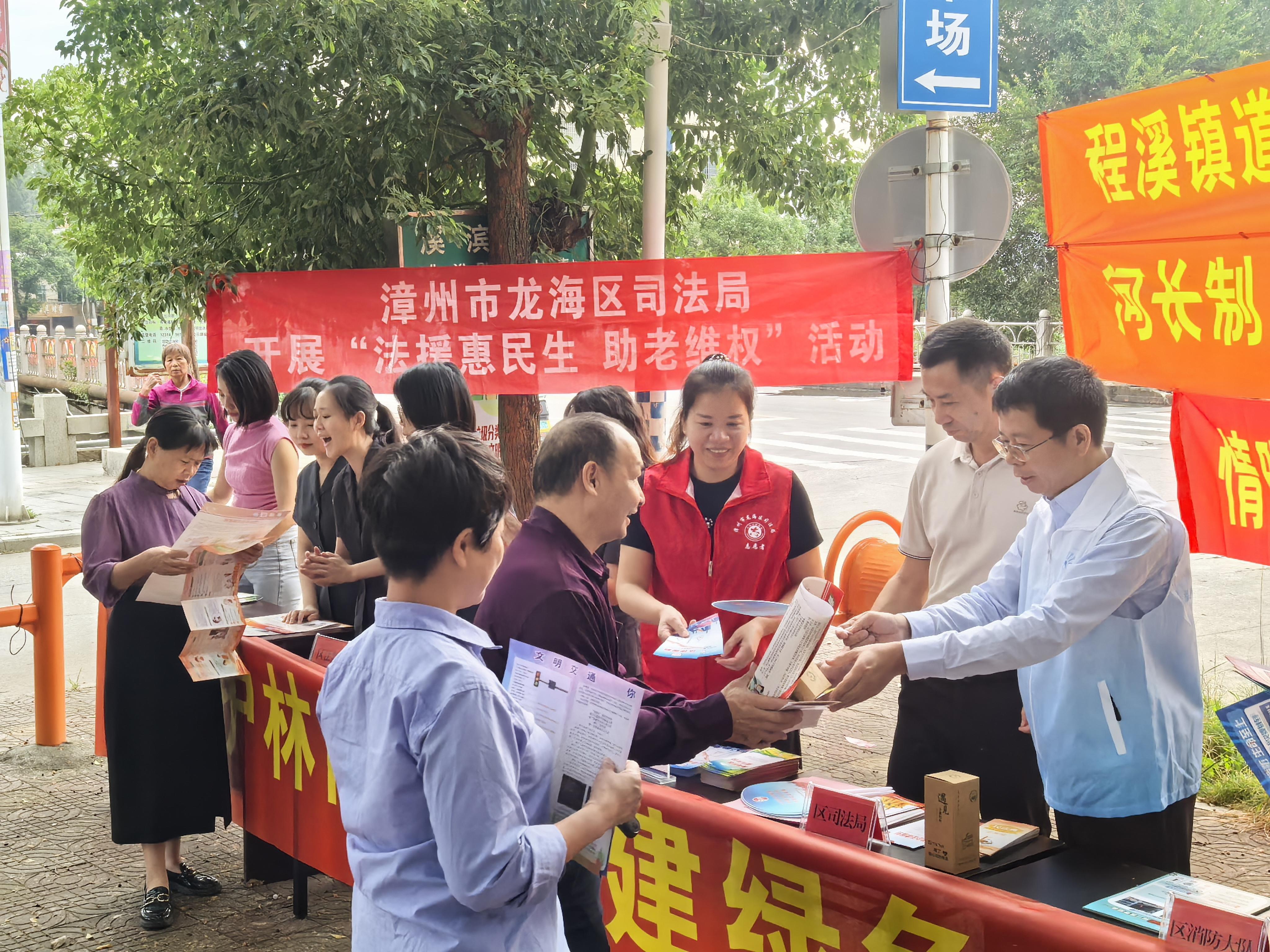 近日,漳州市龙海区司法局联合程溪镇政府、区法院、区消防救援大队,在程溪镇开展法治宣传活动。图为工作人员向群众分发法治宣传资料。 |