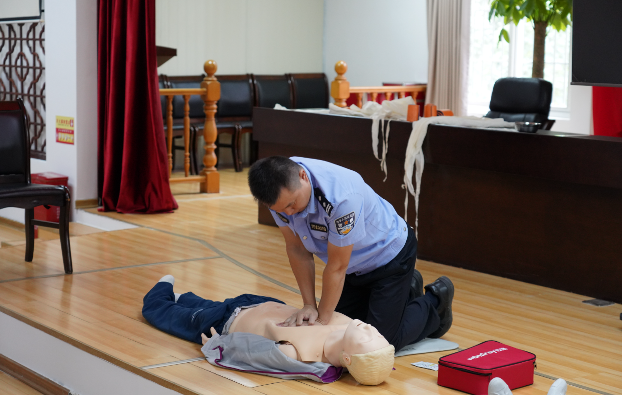 应急心肺复苏比赛现场。(张嘉慧 摄) 比武中,队员以昂扬的斗志、顽强的作风、精湛的技能,赛出风格、赛出水平,充分展现我省监狱医务民警过硬的专业技能和良好的精神风貌,达到了锤炼队伍、交流经验、提升能力、推进工作的预期目标。经过激烈角逐,最终产生团体和个人一、二、三等奖。 曾文嘉在闭幕式上强调,要进一步强化责任意识。全系统医务民警要牢固树立“大安全”“大改造”理念,进一步提高思想认识,强化责任落实,履行好监管医疗工作职责使命;要进一步锤炼过硬本领。切实把岗位练兵与工作实践紧密结合,勤学善思,学以致用,持续提升监管医疗工作能力;要进一步提升服务保障能力。充分发挥建新医院的业务指导作用,常态化开展实战大练兵,提升全系统医务民警技能水平,为更好落实局党委“六个抓”工作要求提供有力支撑。 |