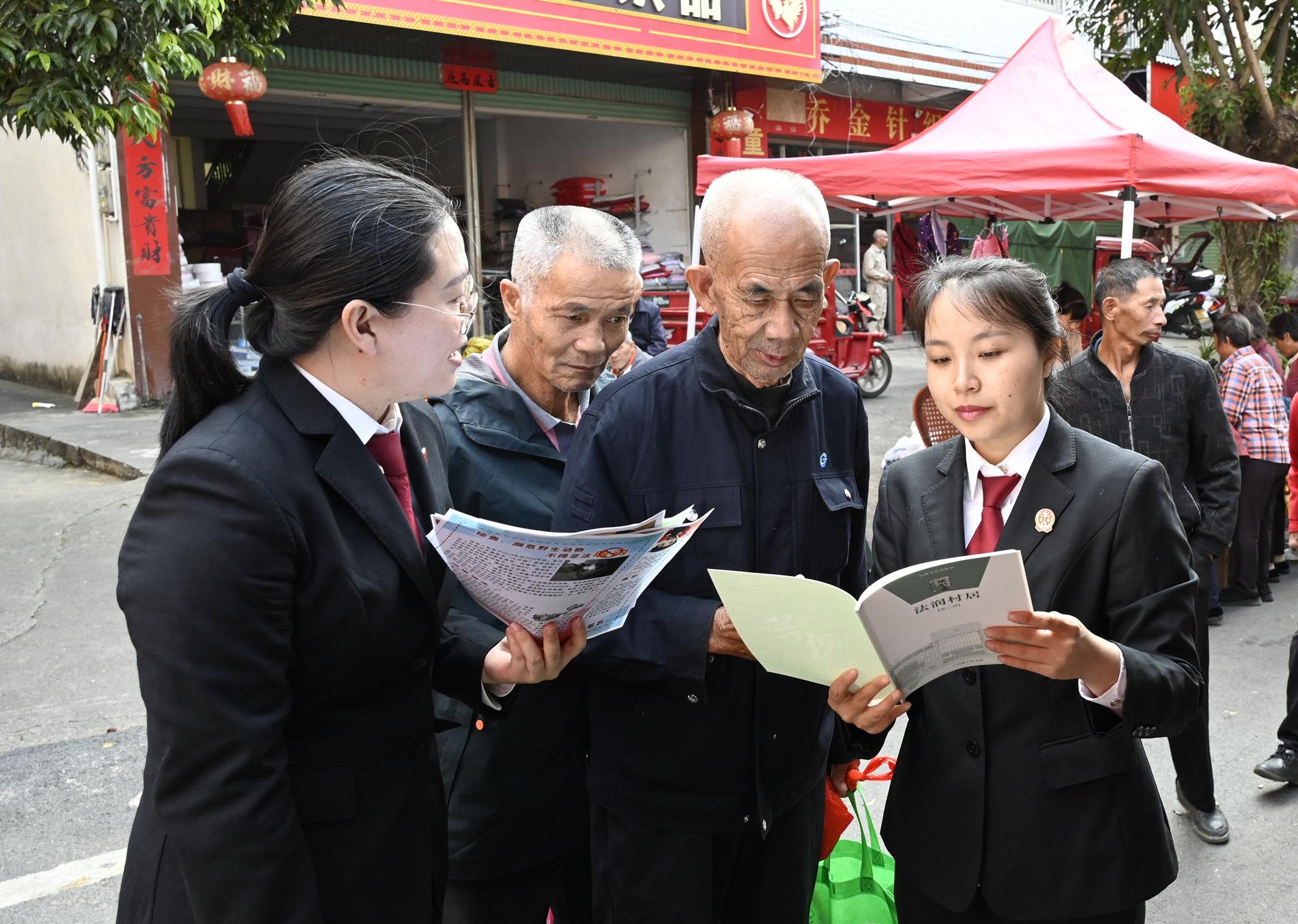 近日,上杭县人民法院联合县公安局森林警察大队前往官庄畲族乡,开展秋冬季森林防火宣传活动。图为法院干警向集镇群众讲解森林防火法律知识。 |