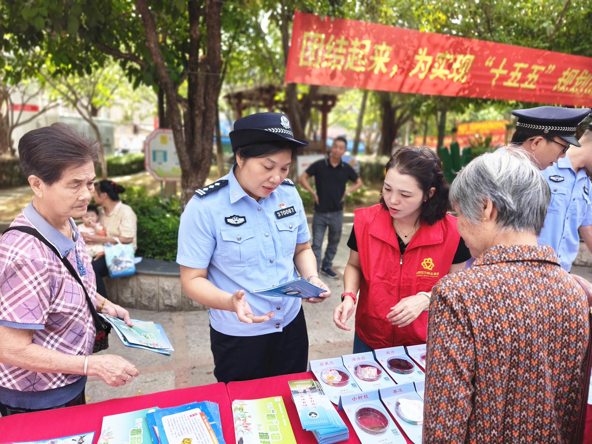 近日,漳州市长泰区禁毒办组织开展“健康人生 绿色无毒”系列宣传活动。图为民警在社区宣传点通过展示毒品仿真模具向群众讲解禁毒知识。 |