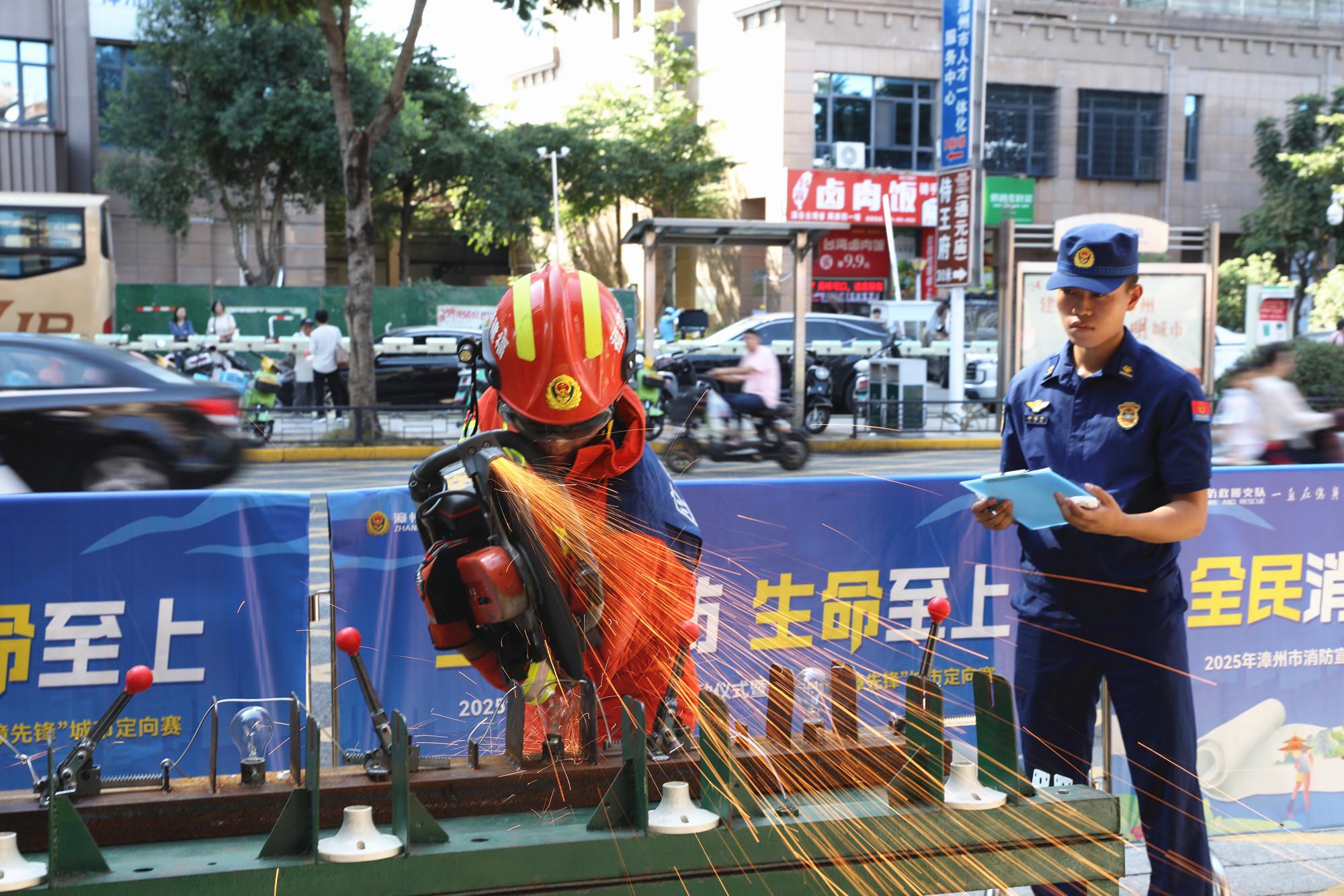 本报讯 近日,漳州古城的石板路上人头攒动、彩旗招展,2025年“全民消防、生命至上——安全用火用电”消防宣传月启动仪式暨第二届“护漳先锋”城市定向赛在这里拉开帷幕。来自全市16个大队的消防指战员与现场市民共400余人参与了此次活动。 在攻坚技巧竞赛中,消防员用无齿锯切割灯泡上铁丝 发令枪响,第二届“护漳先锋”城市定向赛正式开赛。消防指战员迅速投入比赛,在古城的红砖古厝间快速穿梭。赛场设置了“生命守护”“装备强基”“实战砺刃”“蛟龙亮剑”“索固铸安”五个任务区及隐藏任务点,全面检验指战员的实战能力。 本次活动通过“仪式+竞赛+互动”的形式,让消防宣传走出课堂、走进生活,既展示了漳州消防指战员的专业能力,也让市民在参与中提高了消防安全意识和自救互救能力。据了解,消防宣传月期间,漳州市还将持续推进消防知识进社区、进学校、进企业等系列活动,营造“全民消防、生命至上”的良好氛围。 |