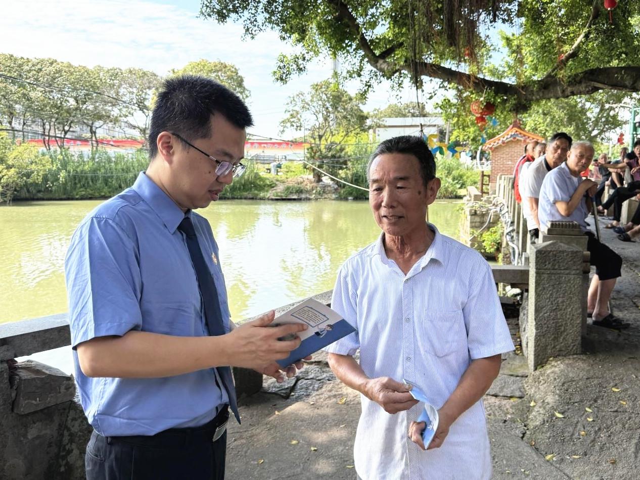 近日,莆田市荔城区检察院组织干警前往村居西天尾镇北大村开展反诈宣传,将反诈宣传阵地搬到村民“家门口”,筑牢村民“防骗墙”。 |