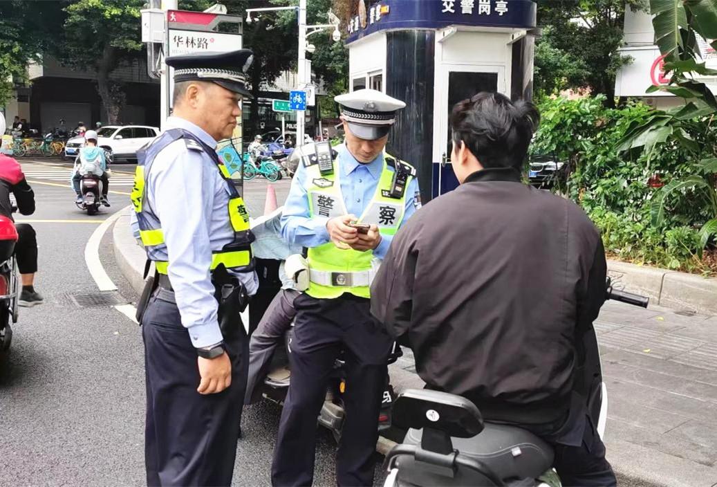 近日,福州市公安局华大派出所联合鼓楼交警大队开展电动自行车“守护安全百日行动”。图为民警在辖区主要路口、重点路段及人流密集区域开展检查。 |