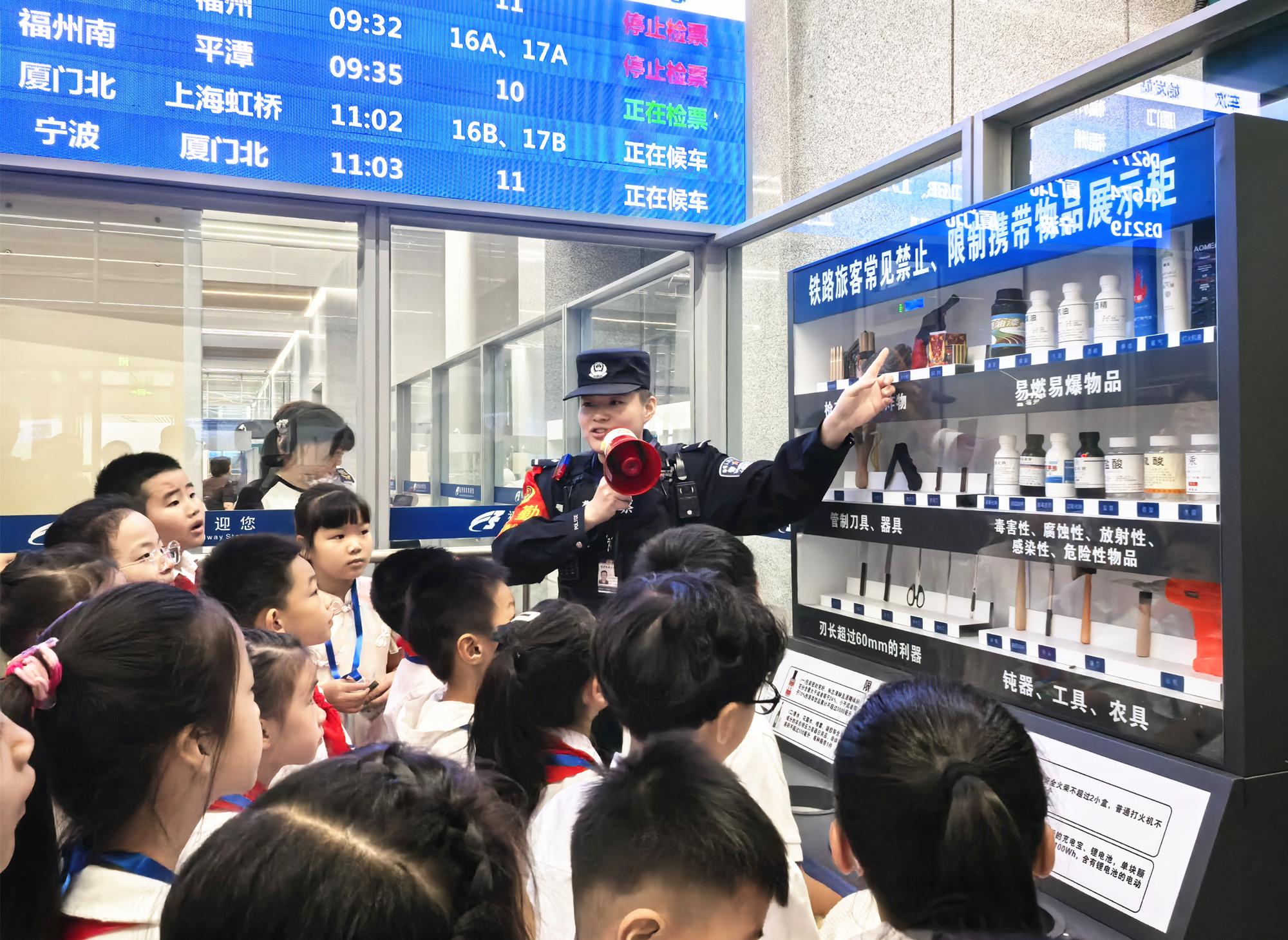 本报讯 近日,福州铁路公安处福州南站派出所联合福建省演讲口才协会、城门卫生院、飞飞鱼志愿服务中心,组织福州市30名小学生,在福州南站举办一场以“小榕树·大平安”为主题的安全宣传实践活动。