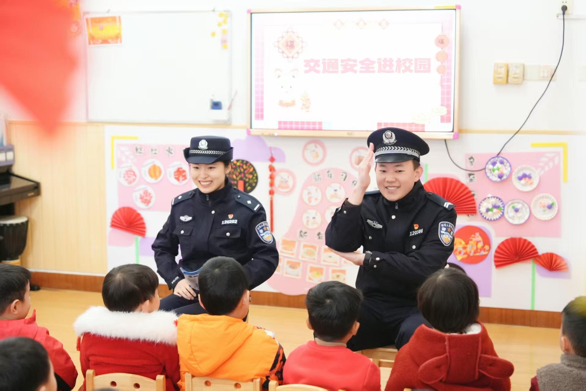 连日来,福州市公安局义洲派出所民警化身“安全宣传员”,走进辖区校园,开展“文明交通 安全‘童’行”宣传活动。图为民警向学生普及乘坐电动车安全知识。 |
