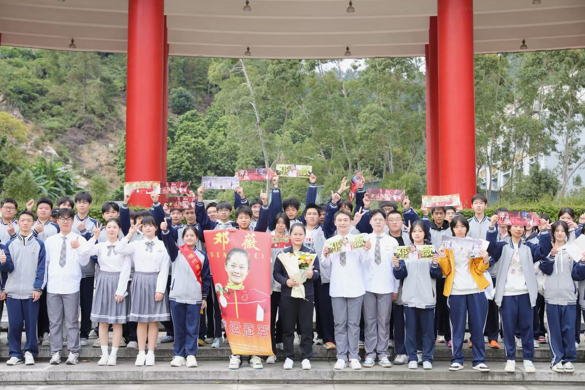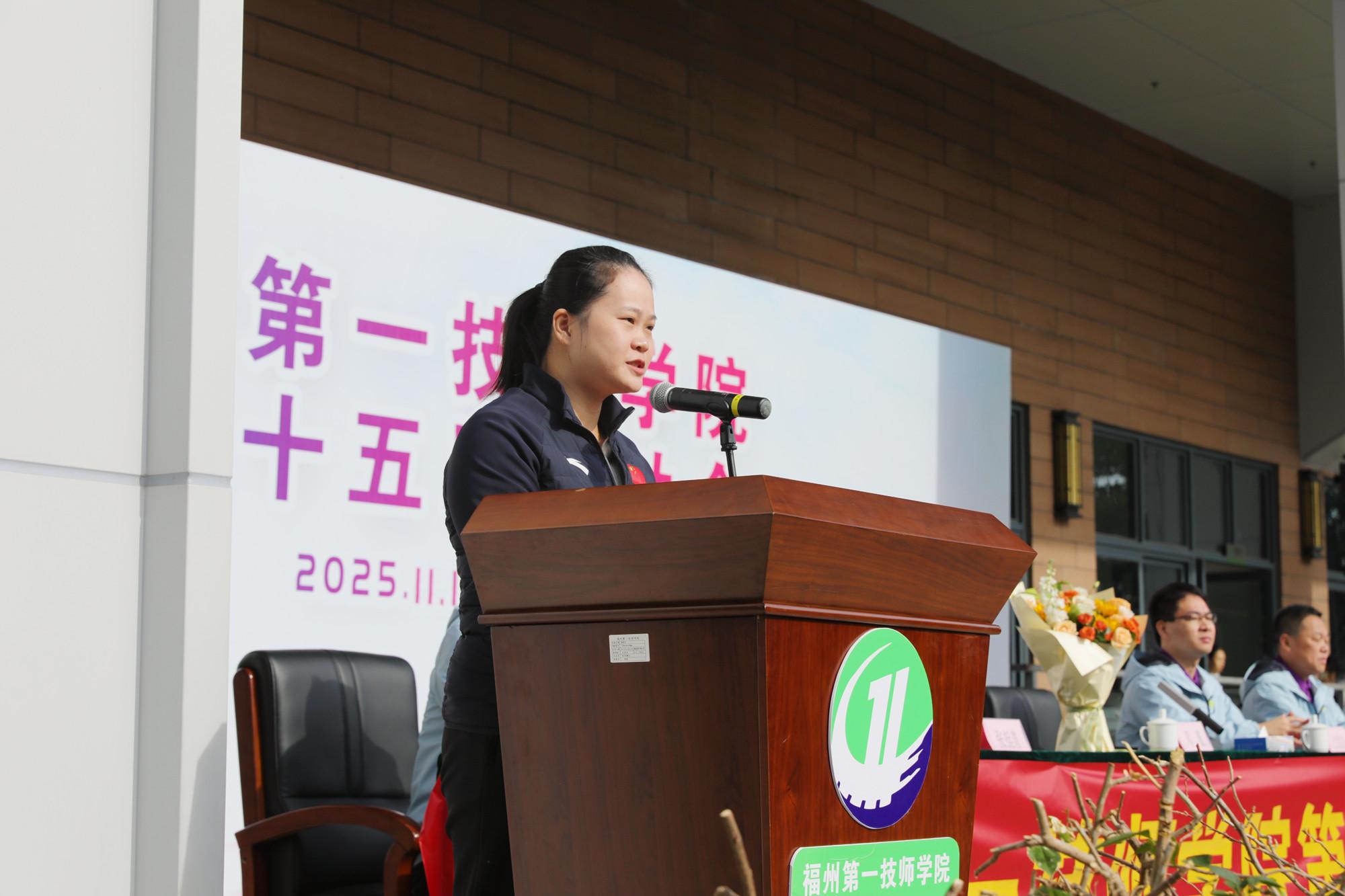 院领导和奥运冠军邓薇共同参加福州第一技师学院第35届田径运动会开幕式 (孙铭旌 摄) 邓薇,一位从福建本土走向世界巅峰的优秀运动员,以其在举重台上的绝对实力和坚韧品格闻名于世。她是2016年里约奥运会女子举重63公斤级冠军,多次在世界锦标赛等国际赛事中折桂,数度刷新世界纪录,获得“中国青年五四奖章”“全国五一劳动奖章”等,现任共青团福建省委员会委员、福建省青少年事业发展中心主任,积极投身于青少年体育事业,以榜样力量激励着新一代青少年成长。