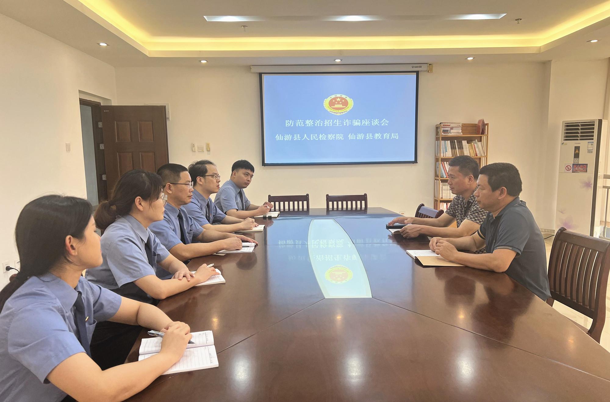 近日,仙游县检察院联合县教育局召开防范整治招生诈骗座谈会,为广大学子和家长筑牢法治“防火墙”。 |