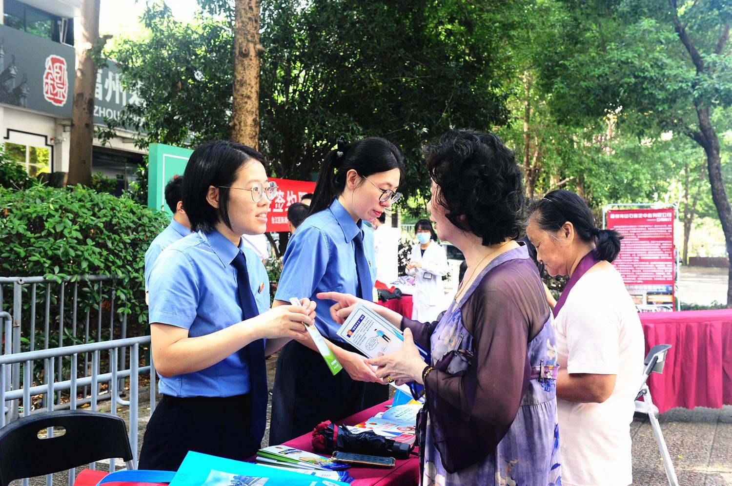 日前,福州市台江区检察院联合台江区新时代文明实践中心、新港街道党工委及办事处等单位,在北光明港公园举办普法宣传活动。图为检察官向群众发放反诈骗宣传手册,并解答法律问题。 |
