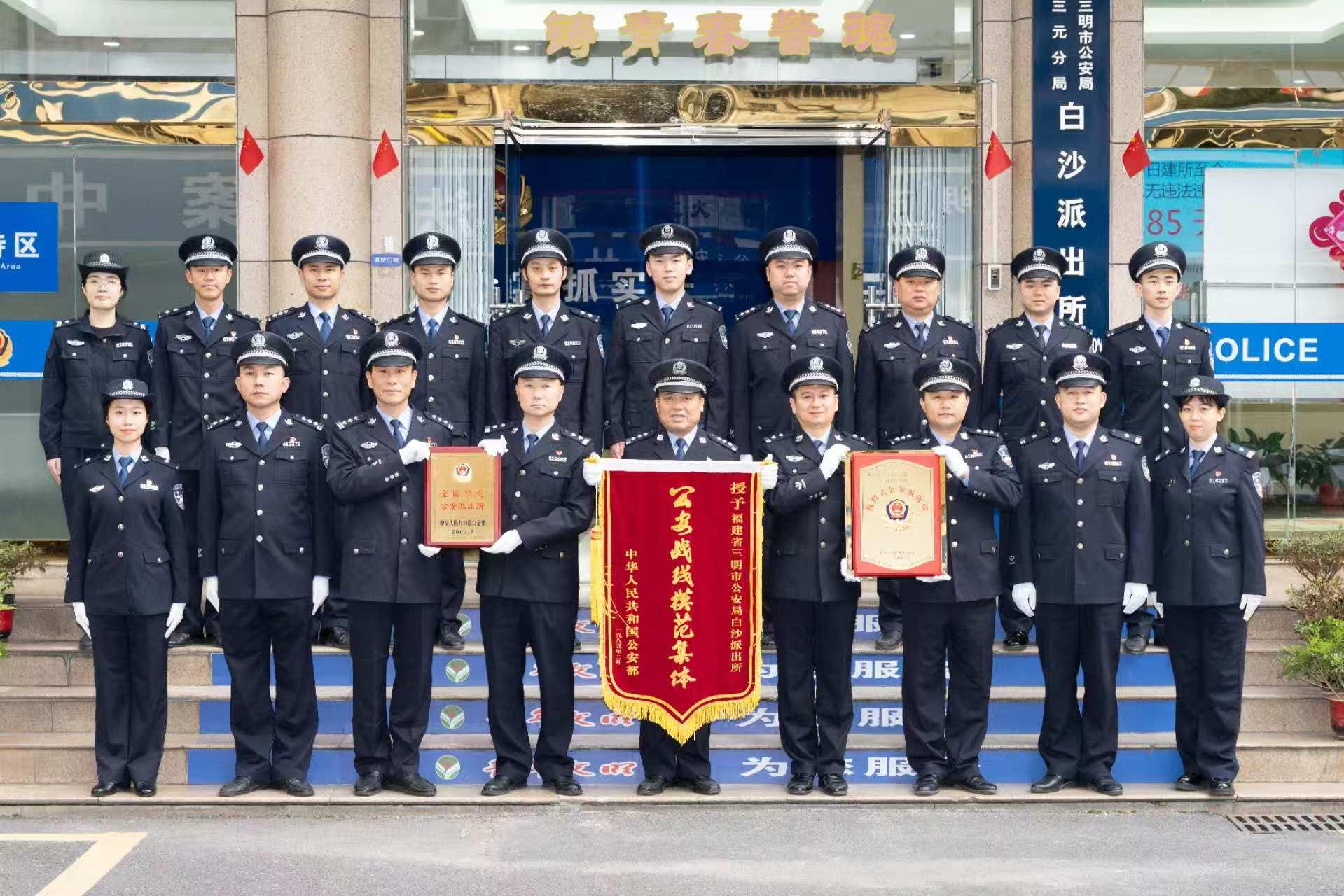 白沙派出所民警合影。(白沙派出所供图) 刚开完会的副所长黄俊芳匆匆赶来,向记者回忆起2016年刚入所时的场景。“那时候跟着老民警下社区,学的是怎么敲开群众的门,怎么听懂方言里的难处。” 黄俊芳还记得2019年获得福建省第三届“十大法治人物(集体)”的细节:“12月6日,我们派代表去省里领奖,还把我们全所共同创作的诗词带到会场。”他低声朗诵,“我们用‘白沙精神’让‘红色基因’与‘枫桥经验’相映,让青山见证我们警徽下的誓言……” 4楼尽头的荣誉室里,玻璃展柜里的荣誉越写越长,在灯光下泛着暖光。细细数来,仅省部级以上的荣誉就有70项——从1985年的“全国公安战线模范集体”荣誉称号,到2019年首批“全国枫桥式派出所”,再到2025年5月中央文明委第六次授予的“全国文明单位”…… “这些荣誉不仅挂在墙上,更刻在每个民警的心里。”教导员王强说。今年新入警的4位民警参观党建室和荣誉室时,在党建室对着入所誓词念得铿锵有力:“我决心继承和发扬白沙派出所光荣传统,永远做党和人民的忠诚卫士。” 变的是所里的民警,不变的是“亲民、爱民、为民”的白沙精神。2024年6月,获得“全国公安战线二级英雄模范”荣誉的民警林先雄听说腿脚不便的社区居民陈某因没有身份证无法申请残疾证后,立即上门了解情况。他见家住8楼的陈某行动艰难,便和外卖小哥一起把陈某背下楼,送到白沙派出所办理身份证。 “规定要走流程,但群众等不起,我们要多为群众考虑。”办完证后,林先雄又开车带着陈某跑评定机构,反复沟通“腿伤事实”。半个月后,陈某拿到残疾证,他妻子拎着一箱牛奶来感谢,被林先雄推了回去:“这是我们应该做的。” 这样的故事在白沙派出所67年里从未断档,荣誉也成为映照工作的镜子与标尺。“每当遇到困难或挑战时,这份荣誉就会提醒我们,不能辜负群众的期待,必须用更高的标准要求自己。”王强感慨,“我们衷心感谢福建法治报社,感谢‘十大法治人物’评选活动搭建的平台,让像我们这样的基层单位有机会走到台前,让社会大众了解法治建设的广泛性和基层实践的重要性,树立了鲜活的榜样,凝聚了法治共识。” 窗外的沙溪河泛着微光,仿佛在见证:有些坚守,时间越久,越显珍贵;有些温度,岁月越长,越暖人心。