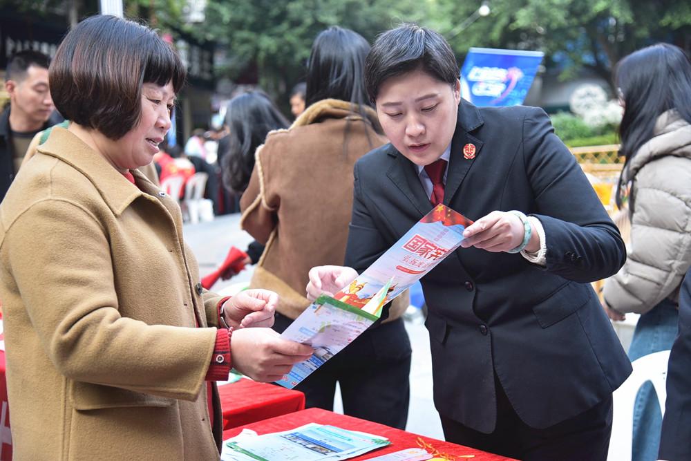 ▲ 南平市延平区人民法院工作人员在百合剧苑设置展台,通过发放宪法知识手册,为群众解读宪法核心要义、常见法律问题解决方案,将专业法律知识转化为群众听得懂、用得上的生活指引。