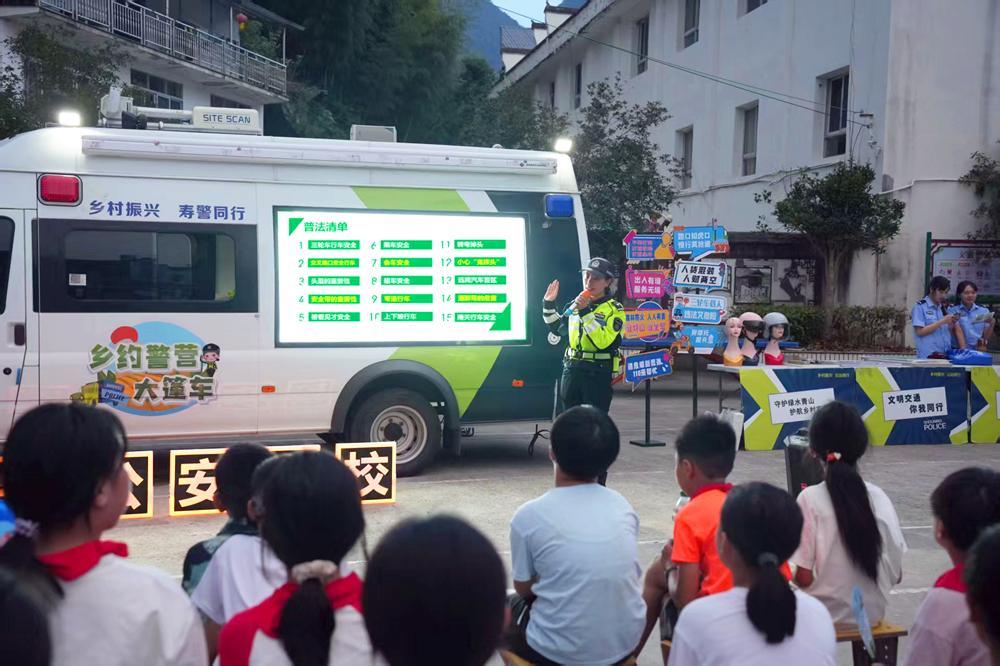 9月4日,在“萤火虫计划“犀溪站,宣讲员展示大篷车上的普法清单。 针对农村不同群体的差异化特点,寿宁县公安局推出更具针对性的精准宣传策略。聚焦“一老一小”重点群体,女子骑行中队在坑底乡孝老食堂用地道的方言演绎交通安全三句半,以家常话为老年村民普及安全知识;在下党乡,10名少先队员组成“寻宝少年先遣队”,开展“古村探秘·安全寻宝记”活动,孩子们在趣味探索中学习交通安全知识,并通过“小手拉大手”方式,将安全理念传递给家人。聚焦生产生活需求,该局针对武曲镇茶农、果农多的特点,定制“山路崎岖果实甜,谨慎驾驶家才圆”等专属交通安全提示牌,在茶园、果园埂边设置醒目警示;在竹管垅乡,组建“背包警务服务队”,深入茶山、稻田与村民家中普及交通安全法规,开展便民服务;在托溪乡,开设“安全‘乡’遇小卖铺”,群众通过体验“鬼探头模型”“盲区展示板”等道具学习交通安全知识,在边玩边学中增强安全意识。 |