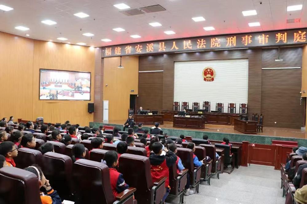 近日,安溪县人民法院开展“法院开放日”活动,辖区小学100余名学生及家长走进法院,在庭审旁听中知敬畏,在法治讲座中学知识,在角色体验中悟责任。图为学生在旁听席感受庭审现场。 |