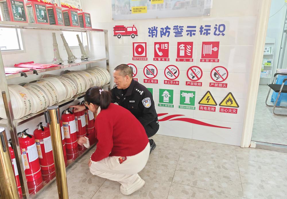 连日来,大田县公安局城关派出所民警走进城关幼儿园,开展校园安全和周边隐患排查整治行动。图为民警正在检查幼儿园内配备的消防器材。 |