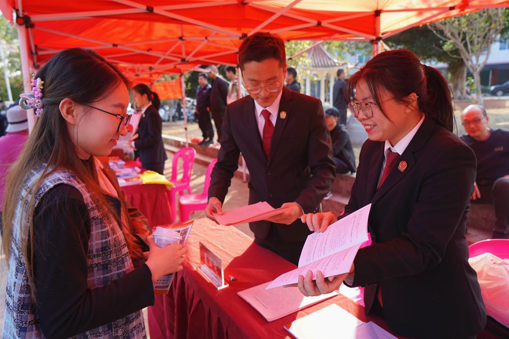 日前,诏安法院组织干警参加诏安县2025年文化、科技、卫生“三下乡”活动。图为干警向群众普及法律知识。 |
