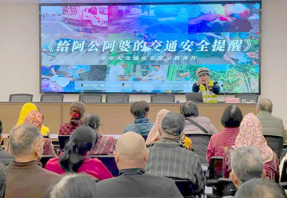 近日,惠安县公安局交通管理大队组织民警深入霞园社区,为辖区老年群体送上实用的交通安全“必修课”。图为民警向老年群体讲解交通安全知识。 |