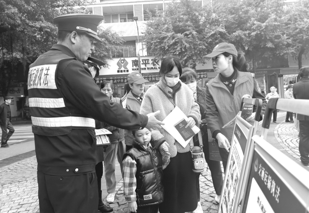 近日,南平高速执法支队一大队参加在人民广场·百合剧苑举行的延平区“平安三率”集中宣传活动。图为执法人员通过发资料、设展板等方式,向群众讲解交通运输相关法律法规知识。 |