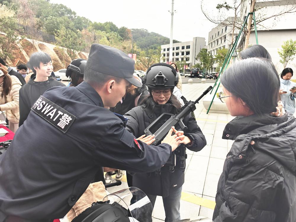 12月25日,福清市反恐办牵头福清市公安局联合福建警察学院国家安全研习社、福建技术师范学院,为近400名师生开设一堂别开生面的反恐知识教育课。课程包括原创情景剧、反恐知识快问快答、特警摔擒表演与反恐实战演练、武器装备展示等内容。 |