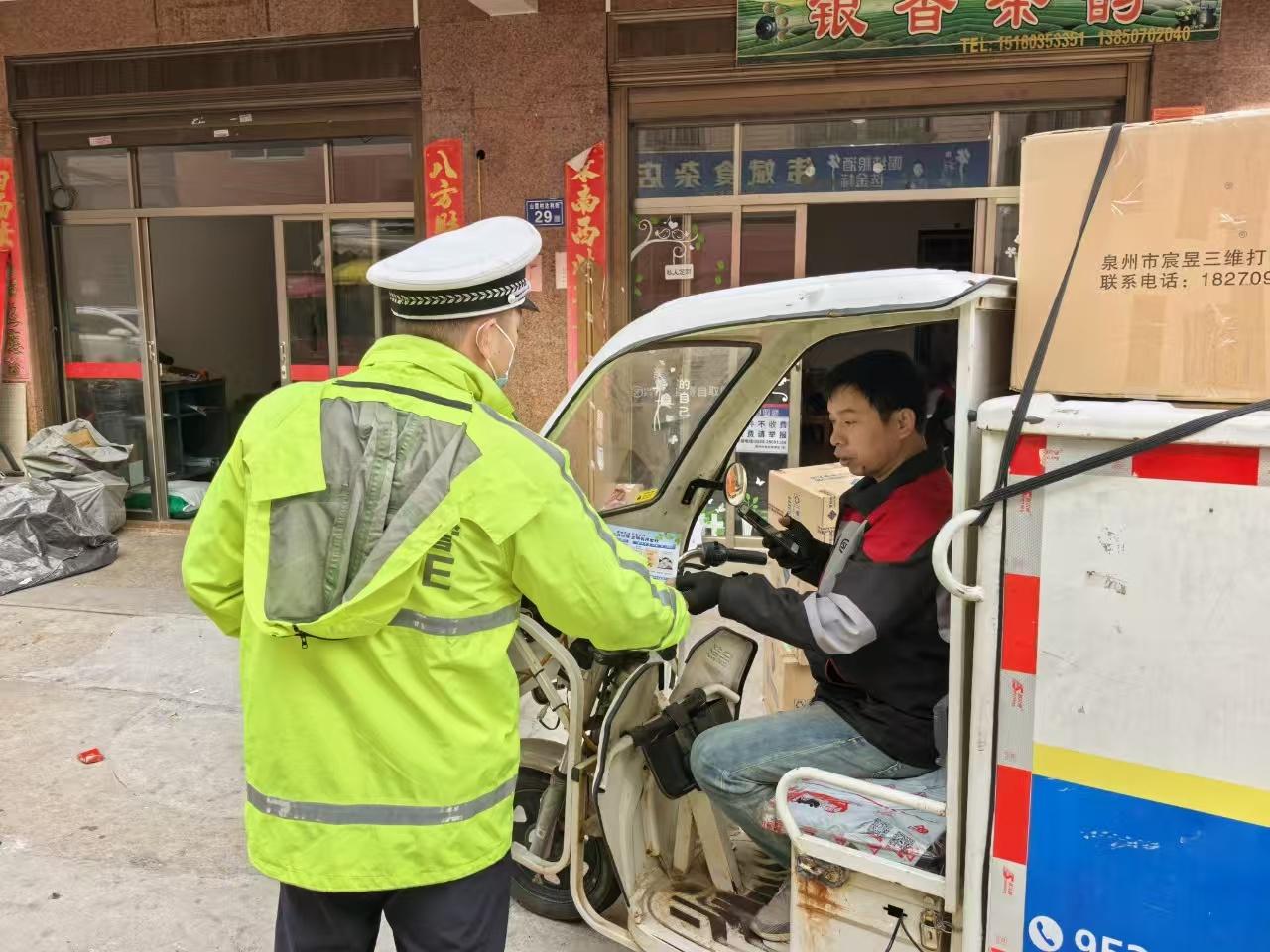 近日,惠安县公安局交通管理大队民警深入辖区快递网点及外卖配送站,开展交通安全宣传活动。活动中,民警向外卖骑手阐释“一盔一带”的重要性及安全行车规范,并结合辖区发生的涉外卖、快递骑手典型交通事故案例,以案说法,引导骑手深刻汲取教训,自觉做到“安全配送、文明出行”。 |