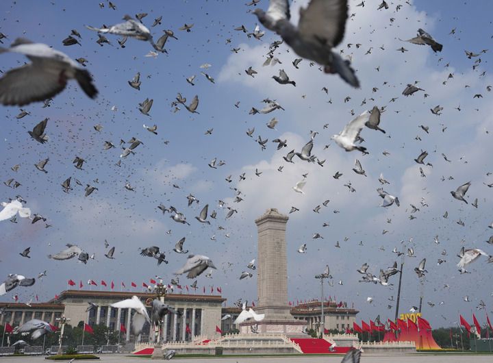 2025年9月3日,纪念中国人民抗日战争暨世界反法西斯战争胜利80周年大会在北京隆重举行。这是纪念大会现场放飞鸽子。新华社记者 牟宇 摄 “坚定不移走中国特色社会主义道路,传承和弘扬伟大抗战精神,踔厉奋发、勇毅前行,为以中国式现代化全面推进强国建设、民族复兴伟业而团结奋斗!”习近平总书记在纪念大会上的重要讲话,凝聚起万众一心的强大精神力量。 现场,中央主要媒体综合运用索道摄像机、贴地微型摄像机等设备和规模化国产8K超高清转播系统,搭建近200个拍摄机位,以电影级画面质感、光影效果,全景式呈现盛大场景。直播实时收视4.3亿人次,相关视频全媒体总触达339.4亿人次。 大江南北、长城内外,从白山黑水到南海之滨,从江南水乡到大漠戈壁,恢弘大气的直播画面将现场盛况传遍中国大地,亿万中华儿女的爱国热情达到高潮,从心底迸发的共鸣激昂澎湃。
