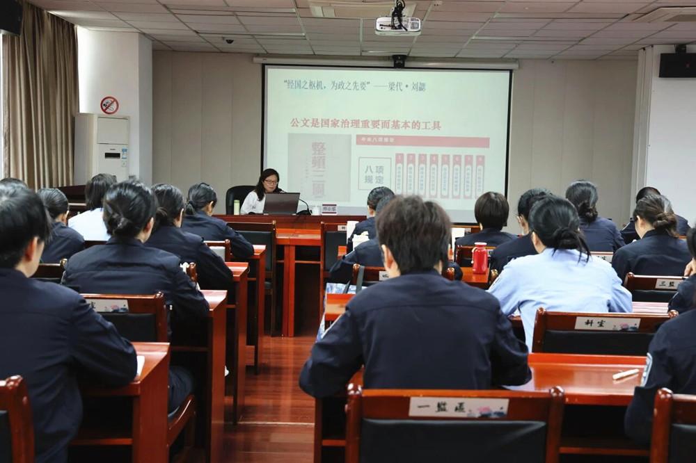 举办公文写作培训。(省女子监狱供图) “晓荷社”记者站则作为实践练兵场,鼓励“青苗”深入基层一线蹲点采写,捕捉鲜活故事,在实战项目中打磨视角、锤炼文笔,激发“头脑风暴”,激活年轻民警善于观察、勇于创新、敢于表达的“新脑子”,让“美丽女监”的宣传作品既有“颜值担当”,更有“言值内涵”。 精诚“正苗” 千锤百炼始成钢,玉汝于成担重任。年轻民警不缺有思路、有想法的“好脑子”,缺的是敢扛事、不怕错的“壮胆子”。省女子监狱注重在实践考验中淬炼“青苗”的政治素养和责任担当。一方面,通过“行走的思政课堂”加强理想信念教育,确保“青苗”根系正直;另一方面,开设“晓荷课堂”,通过小班制教学、项目制带教,让“青苗”在学中干、在干中学,练就“敢担事、能扛事、干成事”的真本事。