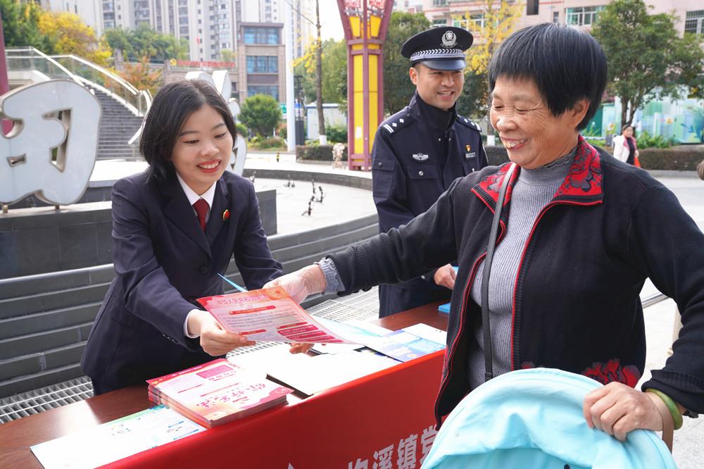 日前,大田县检察院干警在福田广场开展法治宣传活动,通过法条解读、案例分析、互动问答等多种形式,向群众普及宪法等法律知识。图为检察干警向群众发放宪法宣传手册。 |