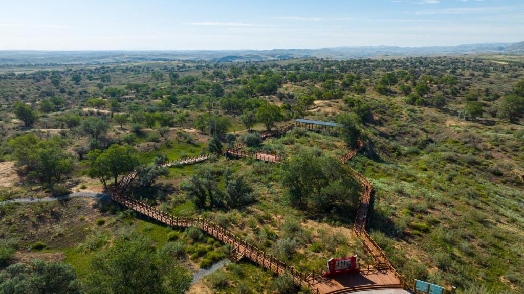 这是2025年7月22日拍摄的武威市古浪县八步沙林场。(武威市融媒体中心供图) 郭万刚把自己的侄子也喊了回来。“年轻人思路活,懂新技术,引入了无人机、打坑机、抱草机,效率提高好几倍!” 他们还在短视频平台注册“八步沙林场”账号,展示治沙场景和林场变化,吸引了网友和社会公益组织的关注。涓涓细流,新绿丛生,更多年轻人加入林场,全国各地的网友还开始了“云种树”,让古浪治沙进入“信息时代”。 风沙渐退,林场顺势发展起林下经济。他们和周边农户成立合作社,养溜达鸡,在梭梭树下嫁接肉苁蓉,治沙又致富。“乡亲们从沙漠中受益,造林护绿的积极性更高了。”郭万刚说。 虽然年事已高,但无论寒暑,郭万刚每天依旧会在天未亮时来到八步沙,检查防火、看护树苗、修剪枝丫…… “今年春天,还有一批新苗就要种下了。”他望着无垠的林海说。