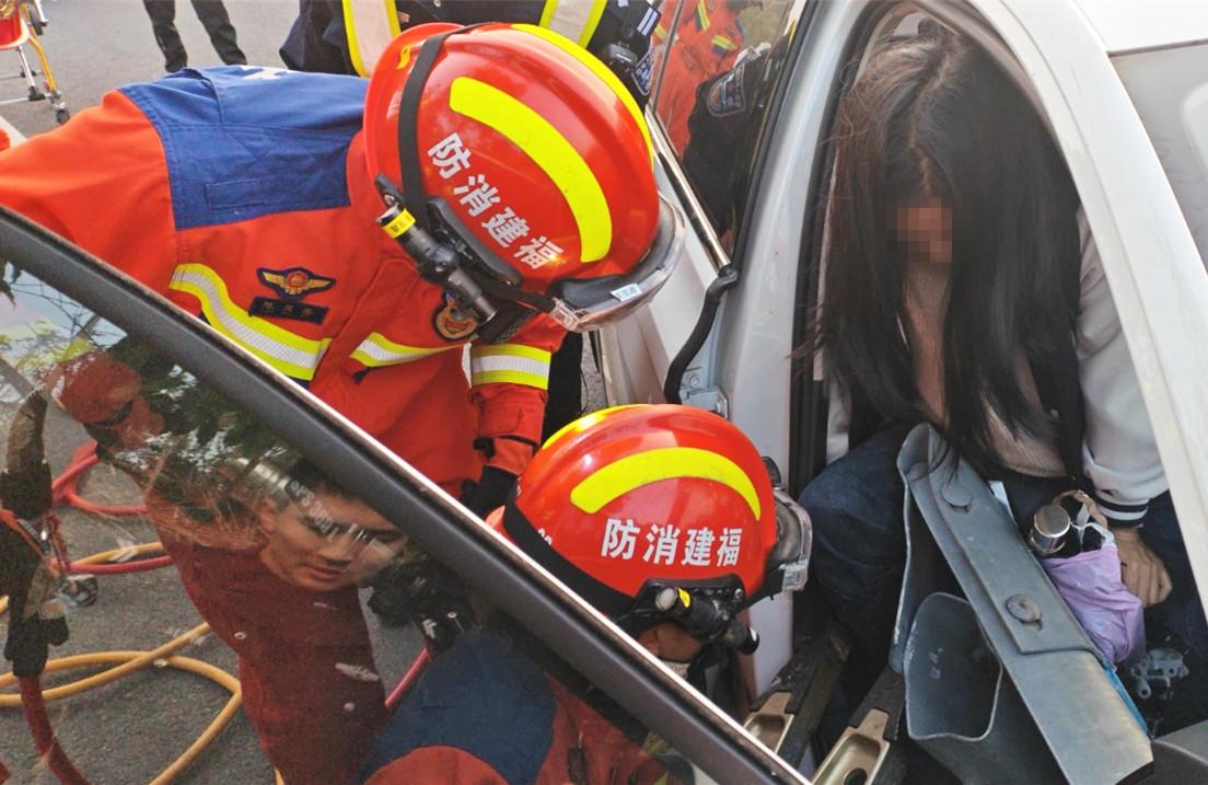 本报讯 近日,武平县消防救援大队消防救援人员通过专业破拆作业,成功解救一名交通事故被困者。 上午7时许,武平县城厢镇环城西路发生一起交通事故,一辆小型轿车失控撞向护栏,导致车内人员被困。接警后,武平县消防救援大队南门消防救援站立即出动人员赶往现场处置。