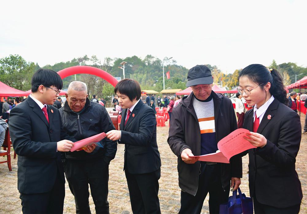 近日,长汀法院组织法官深入乡村,围绕群众关心的纠纷问题,发放宣传手册,提升村民的法治意识和维权能力。图为干警向群众讲解维权案例。 |