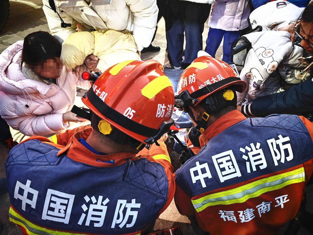 本报讯 近日,松溪县消防救援大队消防员经过8分钟紧急破拆,成功帮助遭电动自行车卡脚的女童脱困。 当日17时36分,南平市消防救援支队指挥中心接到报警后立即调派松溪县消防救援大队松源消防救援站消防员前去松溪县二中红绿灯路口处置。17时43分,消防员抵达事发地点,发现一名女童的左脚被死死卡在电动自行车后轮与车架的缝隙中,女童因疼痛情绪焦躁,家长在一旁急得手足无措。