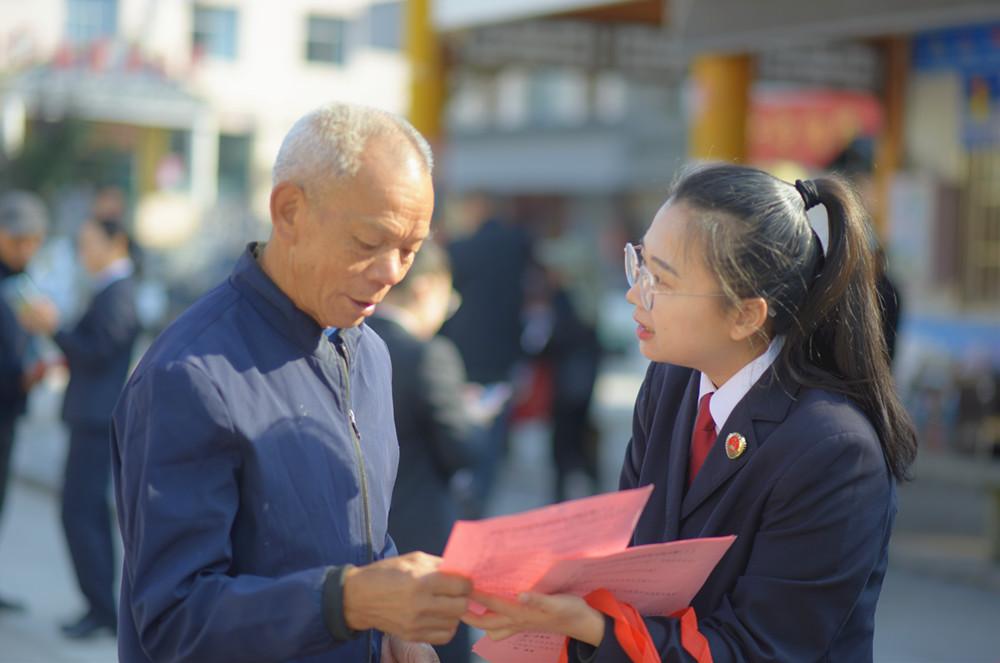 近日,三明市沙县区检察院干警走进南霞乡,开展以“学法懂法护权益,法治护航促和谐”为主题的普法宣传活动。图为检察干警向群众普法。 |