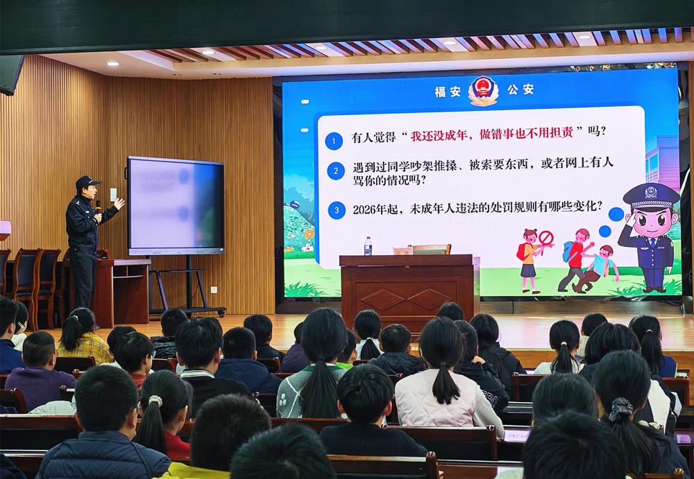 1月29日,福安市公安局城北派出所组织民警走进八一小学,为学生讲授一堂以“知法于心,守法于行”为主题的法治宣讲课,增强学生法治意识,筑牢假期安全防线。 |