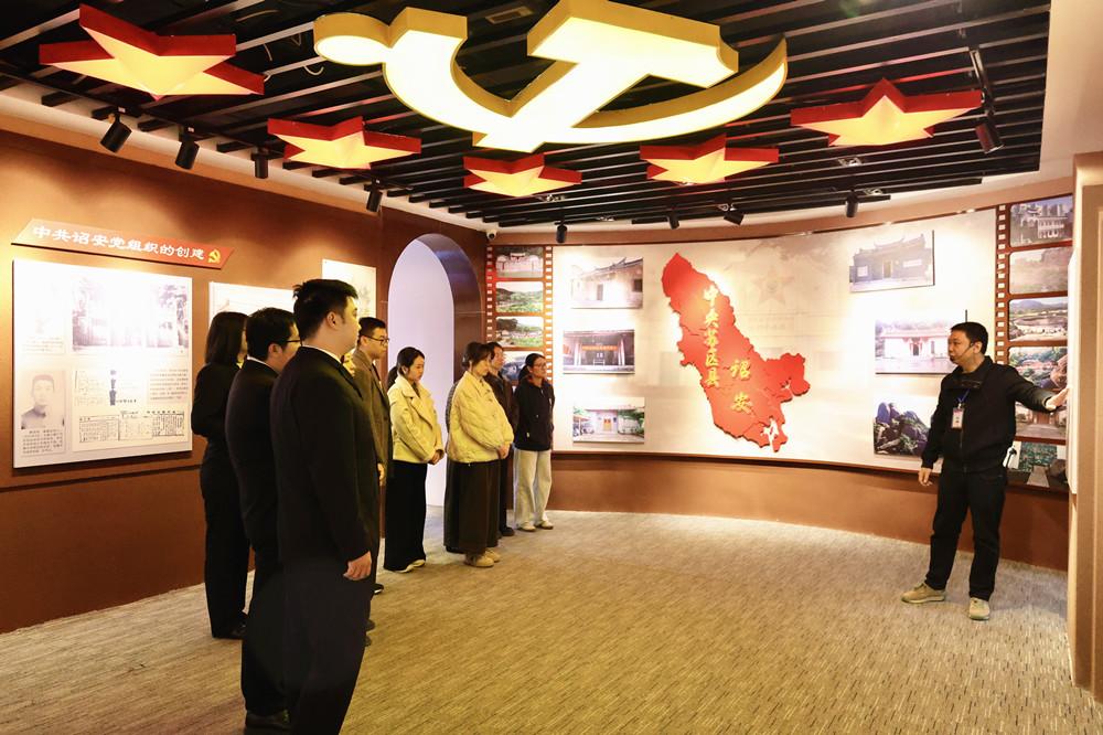 近日,诏安县检察院组织干警及高校实习生前往诏安县革命历史纪念馆开展“追寻红色记忆,筑牢忠诚检魂”主题党日活动。图为检察干警聆听革命先辈的感人事迹。 |