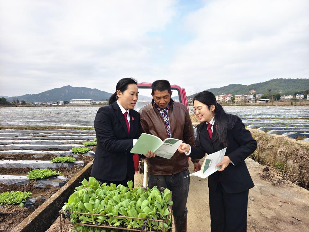近日,上杭县人民法院村居法官前往庐丰畲族乡丰济村烟叶种植一线开展法治宣传活动,为辖区烟叶种植保驾护航。图为村居法官向烟叶种植户讲解涉农法律知识。 |