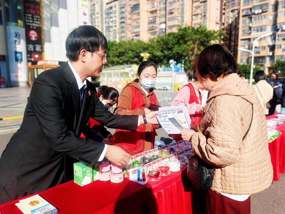 近日,龙岩新罗法院法官走进南城街道莲东社区,开展一场生动的法治宣传活动。活动中,法官们向居民详细讲解了防范电信网络诈骗知识。图为法官正在为居民答疑解惑。 |