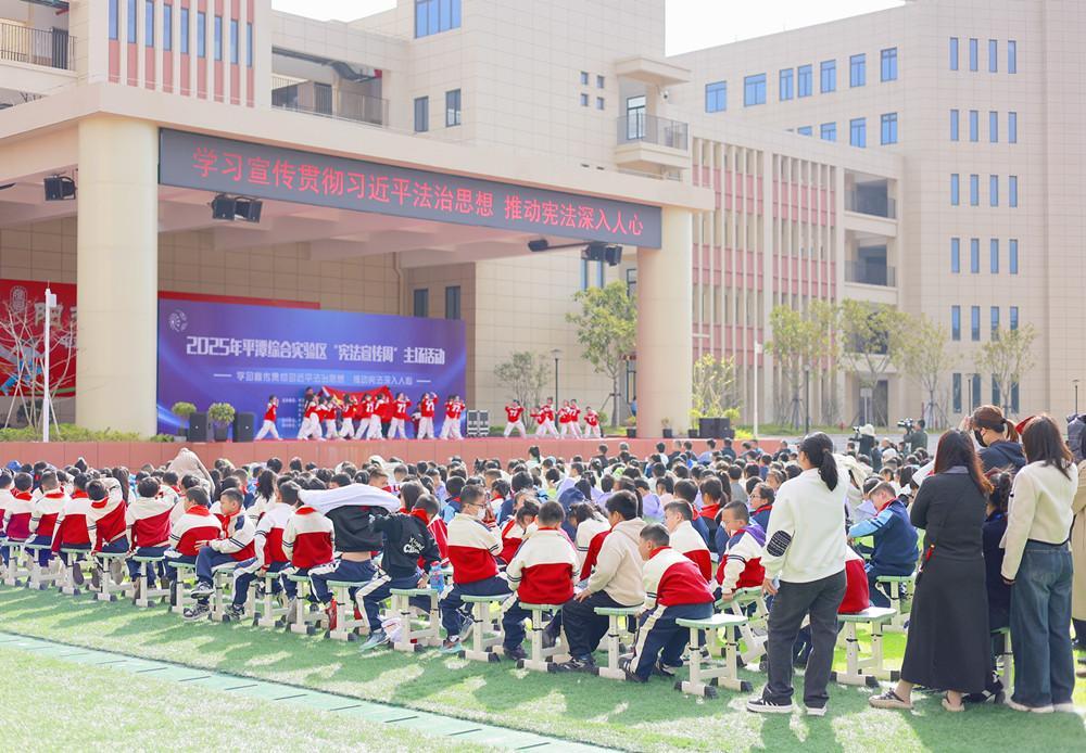 平潭综合实验区全面依法治区委员会办公室、政法社会部、宣传影视部、法学会等部门,在平潭龙山小学新校区联合举办2025年“宪法宣传周”主场宣传活动。 为了让法治阳光照亮每一座小岛,杨倞希和同事坚持“送法进小岛”,乘渡轮穿梭于各海岛,克服海风颠簸、路况复杂的困难,为偏远海岛学生开展普法讲座45场次,赠送法治书籍和材料1万余份,实现偏远小岛学校普法全覆盖。 生态安全是平潭发展的核心优势。平潭实验区政法工作领导小组统筹推动生态环境司法保护,助力平潭检察院打造“岚岛检察蓝”生态司法品牌,建立“五位一体”海洋生态检察机制,用法治力量守护碧海蓝天。