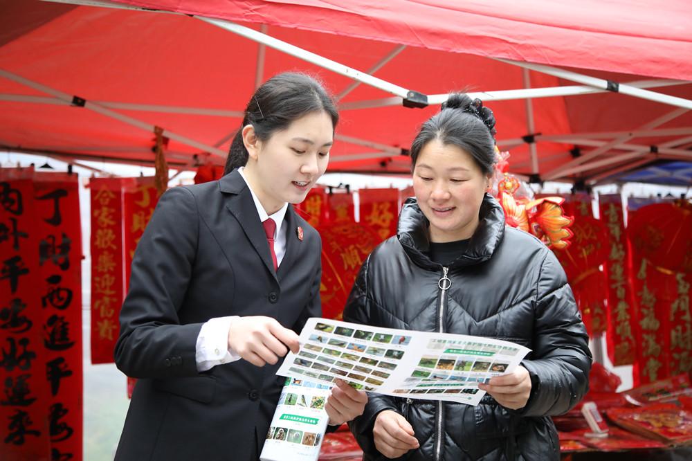 近日,三明市三元区人民法院干警走进洋溪镇新街村街头开展普法宣传活动。图为法院干警向群众解读《三明市国家重点保护陆生野生动物名录》。 |