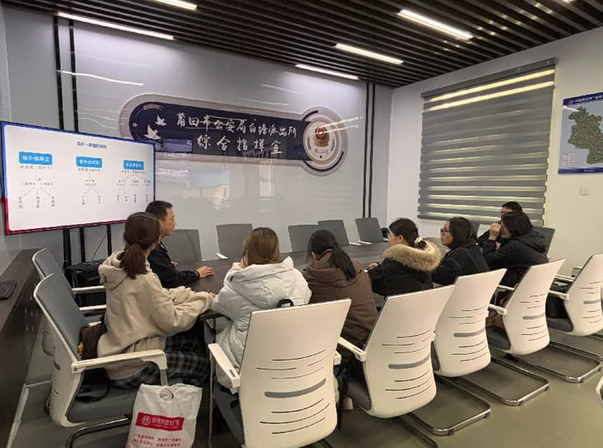 实践队员在生态警务联勤工作站调研学习 守护烟火:夯实社区平安根基 木兰溪的“新生”,离不开岸边安宁的万家灯火。白塘派出所推行的“两队一室”改革,正是对此的回应:社区民警深耕“责任田”,成为居民身边人;案件办理队专注打击犯罪;综合指挥室智慧调度,确保警情在基层高效处置。 此外,调解室的“三个当场”(当场受理、当场调查、当场调解)制度快速化解邻里纠纷;莆田市政务服务中心公安专窗的“一窗通办”让群众省心省力。这些举措夯实了社会安宁的治理根基,将生态治理成果转化为群众可感可及的幸福感,让平安的“烟火气”在溪畔升腾。
